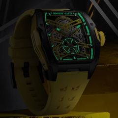 Đặc điểm nổi bật | - Phong cách thiết kế Sport watch dành cho những người đam mê thể thao tốc độ. Mặt thieets kế Skeleton độc đáo. - Chức năng: + Lộ tim tại góc 6h. + Case back xuyên thấu. |