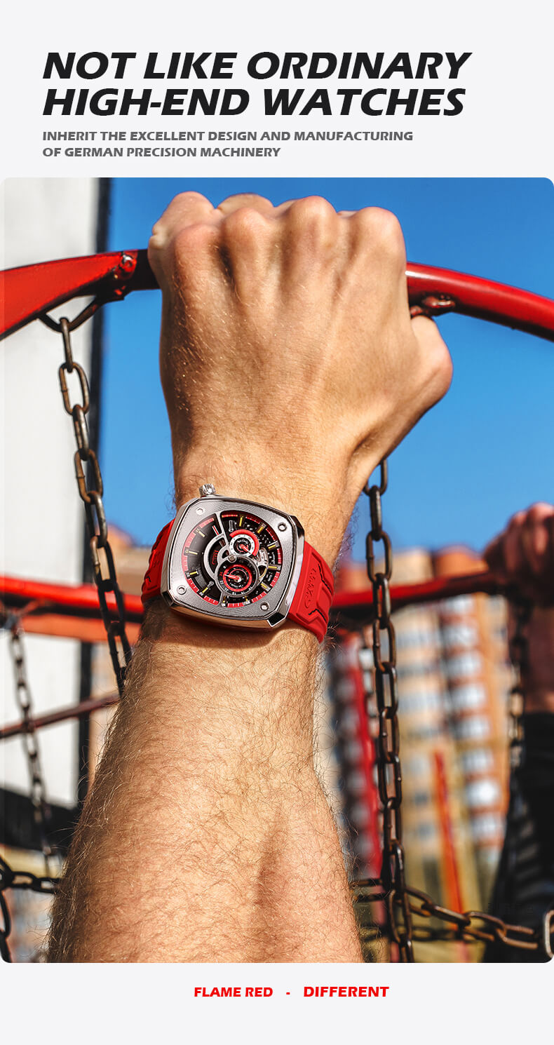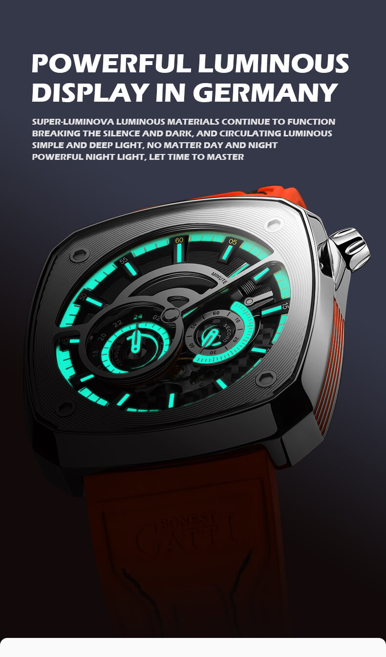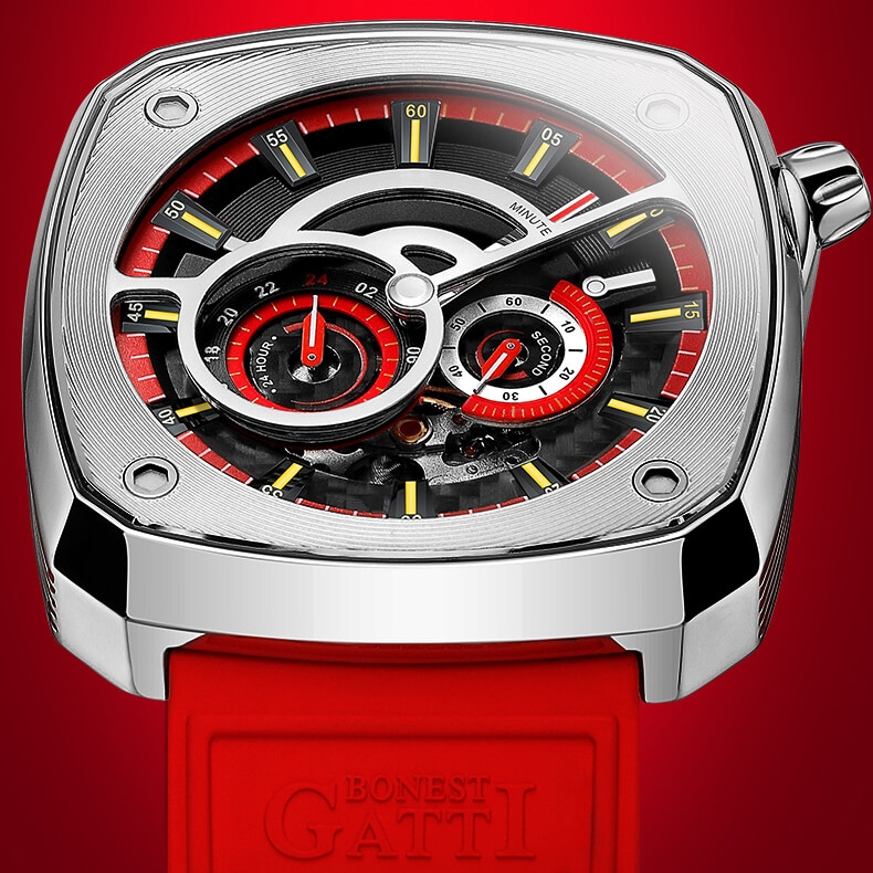 Thiết kế độc đáo của Bonest Gatti Offshore Speed BG6601 là điểm nhấn chính của chiếc đồng hồ này. Mặt số trông rất phong cách và hiện đại, với các số chỉ giờ và cọc phút được cắt rãnh tinh tế, tạo nên một tổng thể hài hòa và ấn tượng. Bên cạnh đó, các bộ phận bên trong của máy móc đồng hồ cũng được hiển thị rõ ràng trên mặt số, cho phép người đeo có cái nhìn trực quan về cơ chế hoạt động của đồng hồ.