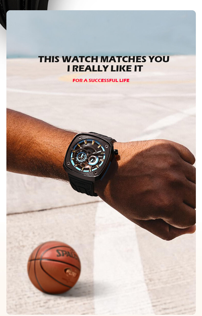 Đặc điểm nổi bật | - Phong cách thiết kế Sport watch. - Chức năng: + Kim và mặt số phủ dạ quang. + Case back xuyên thấu. |