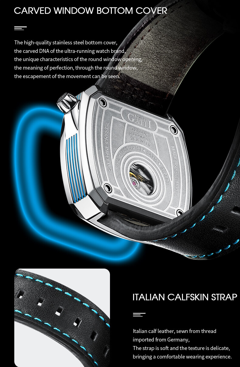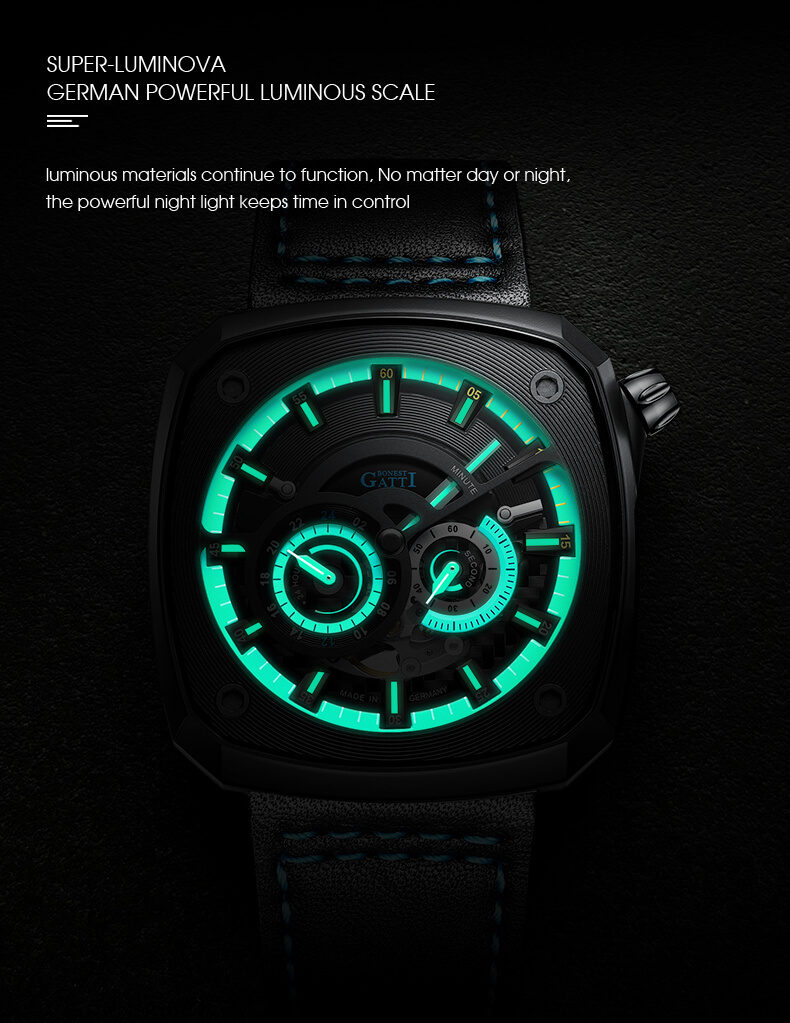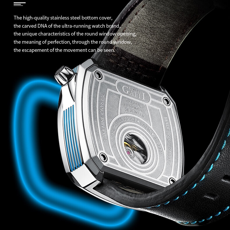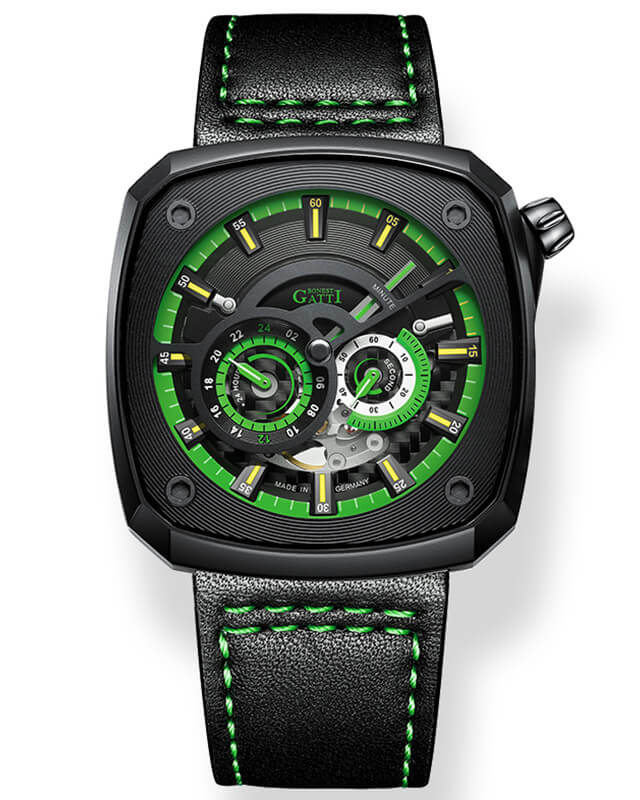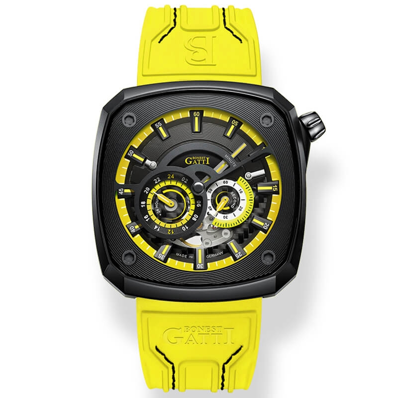 Thiết kế độc đáo của Bonest Gatti Offshore Speed BG6601 là điểm nhấn chính của chiếc đồng hồ này. Mặt số trông rất phong cách và hiện đại, với các số chỉ giờ và cọc phút được cắt rãnh tinh tế, tạo nên một tổng thể hài hòa và ấn tượng. Bên cạnh đó, các bộ phận bên trong của máy móc đồng hồ cũng được hiển thị rõ ràng trên mặt số, cho phép người đeo có cái nhìn trực quan về cơ chế hoạt động của đồng hồ.