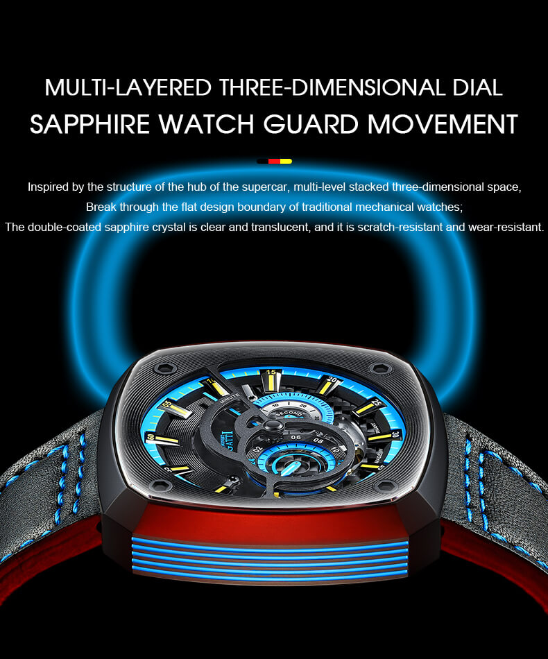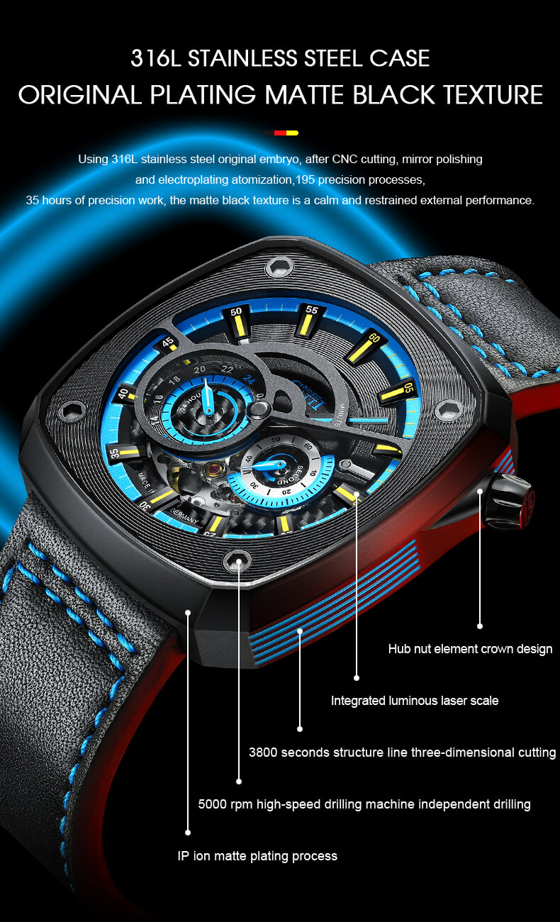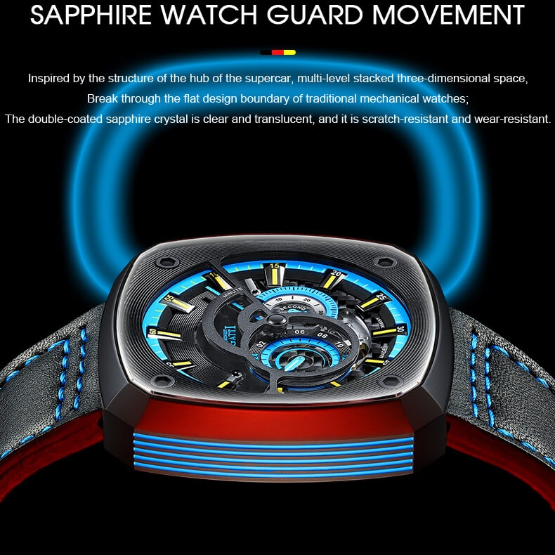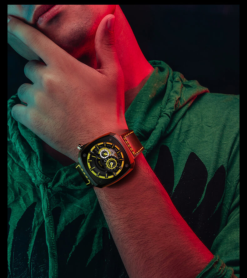 Thiết kế độc đáo của Bonest Gatti Offshore Speed BG6601 là điểm nhấn chính của chiếc đồng hồ này. Mặt số trông rất phong cách và hiện đại, với các số chỉ giờ và cọc phút được cắt rãnh tinh tế, tạo nên một tổng thể hài hòa và ấn tượng. Bên cạnh đó, các bộ phận bên trong của máy móc đồng hồ cũng được hiển thị rõ ràng trên mặt số, cho phép người đeo có cái nhìn trực quan về cơ chế hoạt động của đồng hồ.