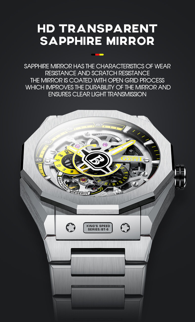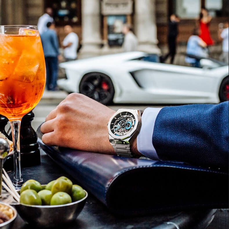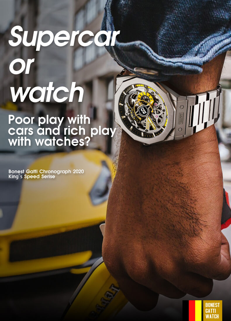 Đặc điểm nổi bật | - Phong cách thiết kế Sport watch dành cho những người đam mê thể thao tốc độ. - Chức năng: + Các mặt đồng hồ nhỏ chỉ giờ và giây. + Case back xuyên thấu. |