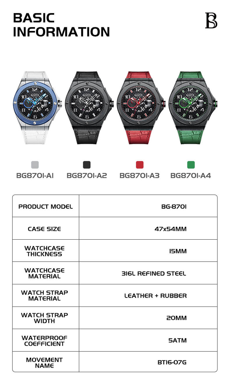 Đồng hồ Bonest Gatti Fixed Star BG8701 được tạo ra cho những người thích sưu tầm đam mê chơi đồng hồ với tầm nhìn độc đáo bằng cách kết hợp chất lượng cao và phong cách thể thao sang trọng, nhẹ nhàng một chất riêng biệt so với những thương hiệu đồng hồ khác.