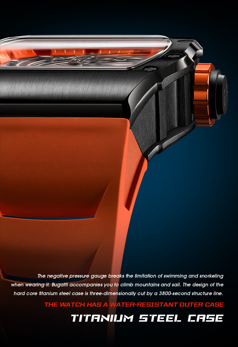 Đặc điểm nổi bật | - Phong cách thiết kế Sport watch dành cho những người đam mê thể thao tốc độ. - Chức năng: + Lộ tim tại góc 7h. + Case back xuyên thấu. |