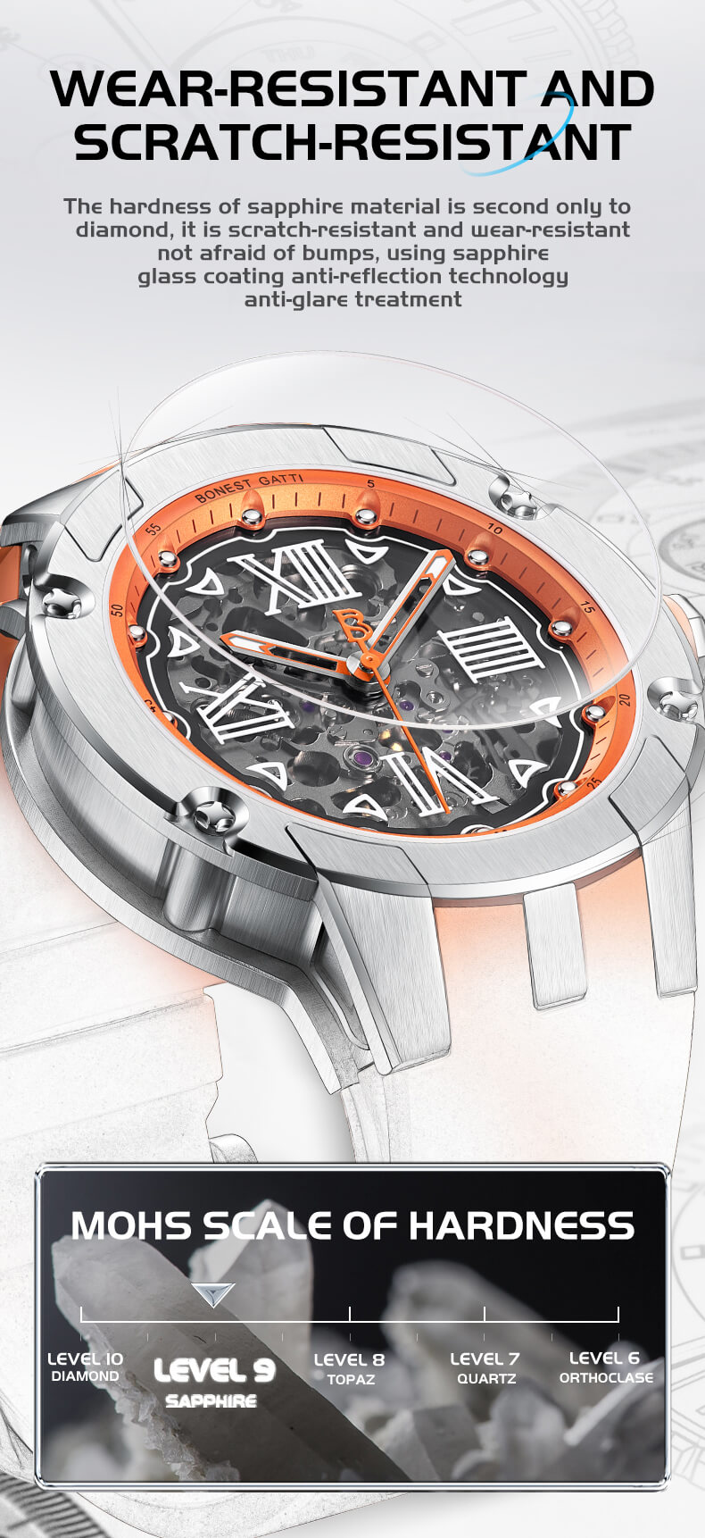 Mặt kính | Sapphire Crystal nguyên khối chống xước, chống lóa |