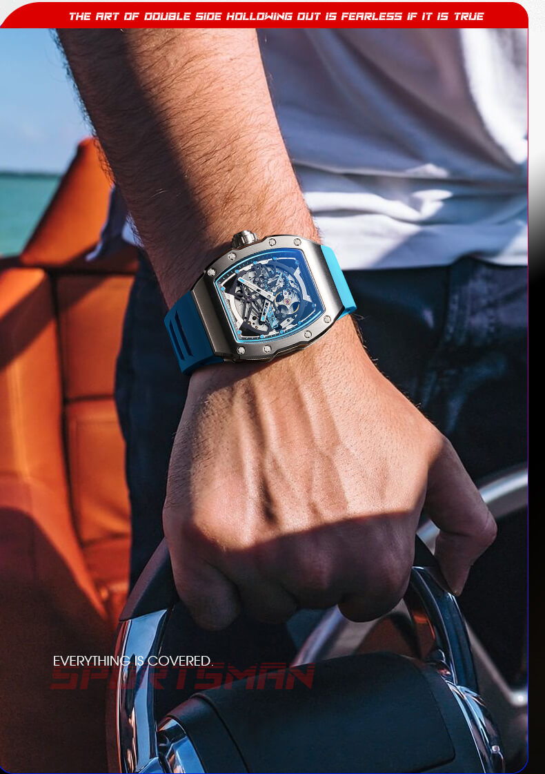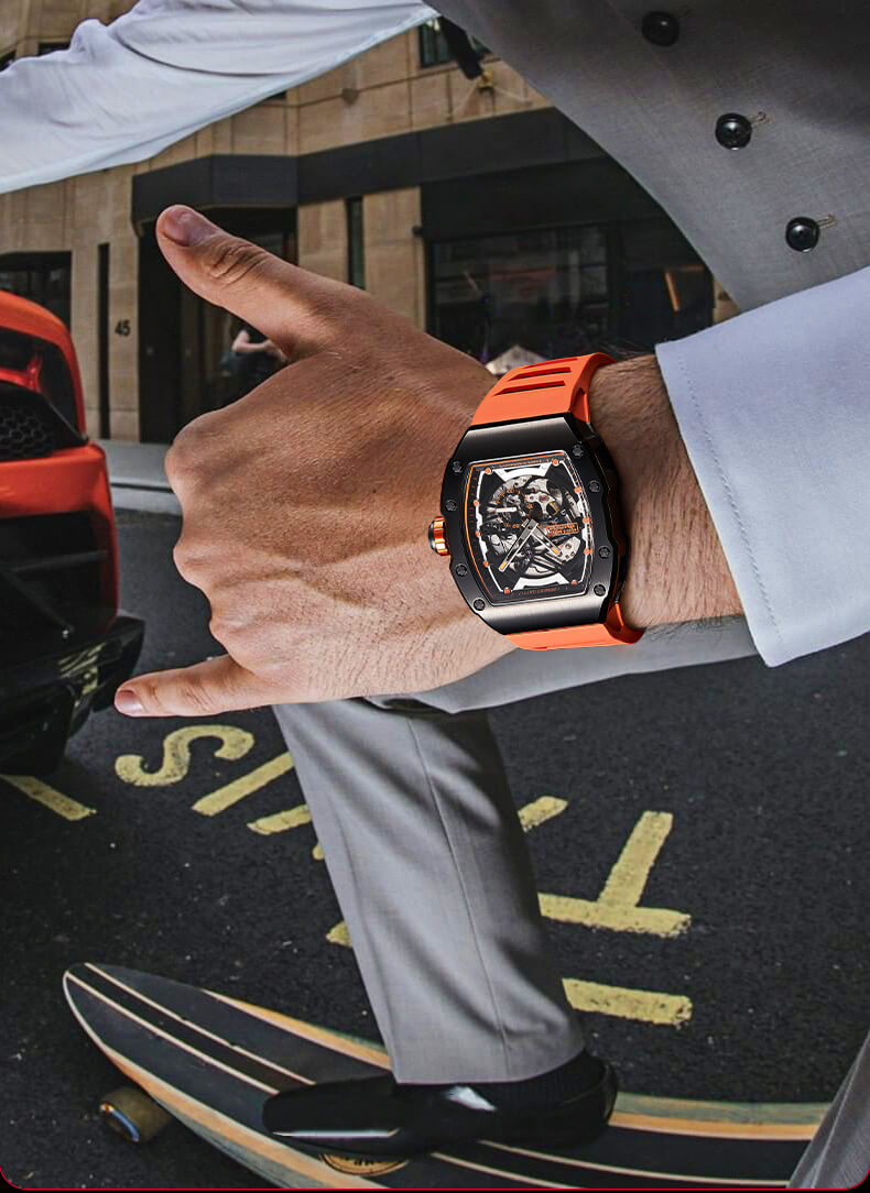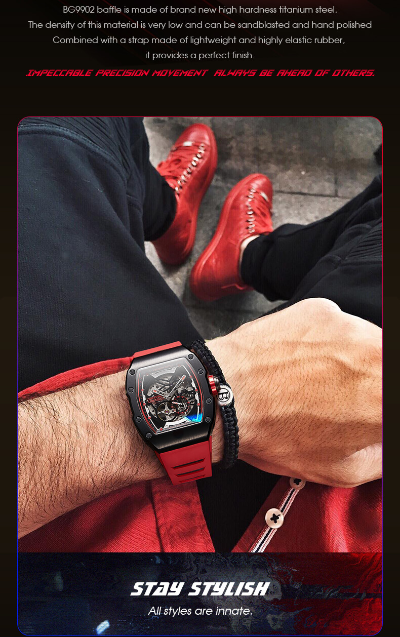 Đặc điểm nổi bật | - Phong cách thiết kế Sport watch dành cho những người đam mê thể thao tốc độ. - Chức năng: + Mặt đồng hồ nhỏ giây. + Case back xuyên thấu. |