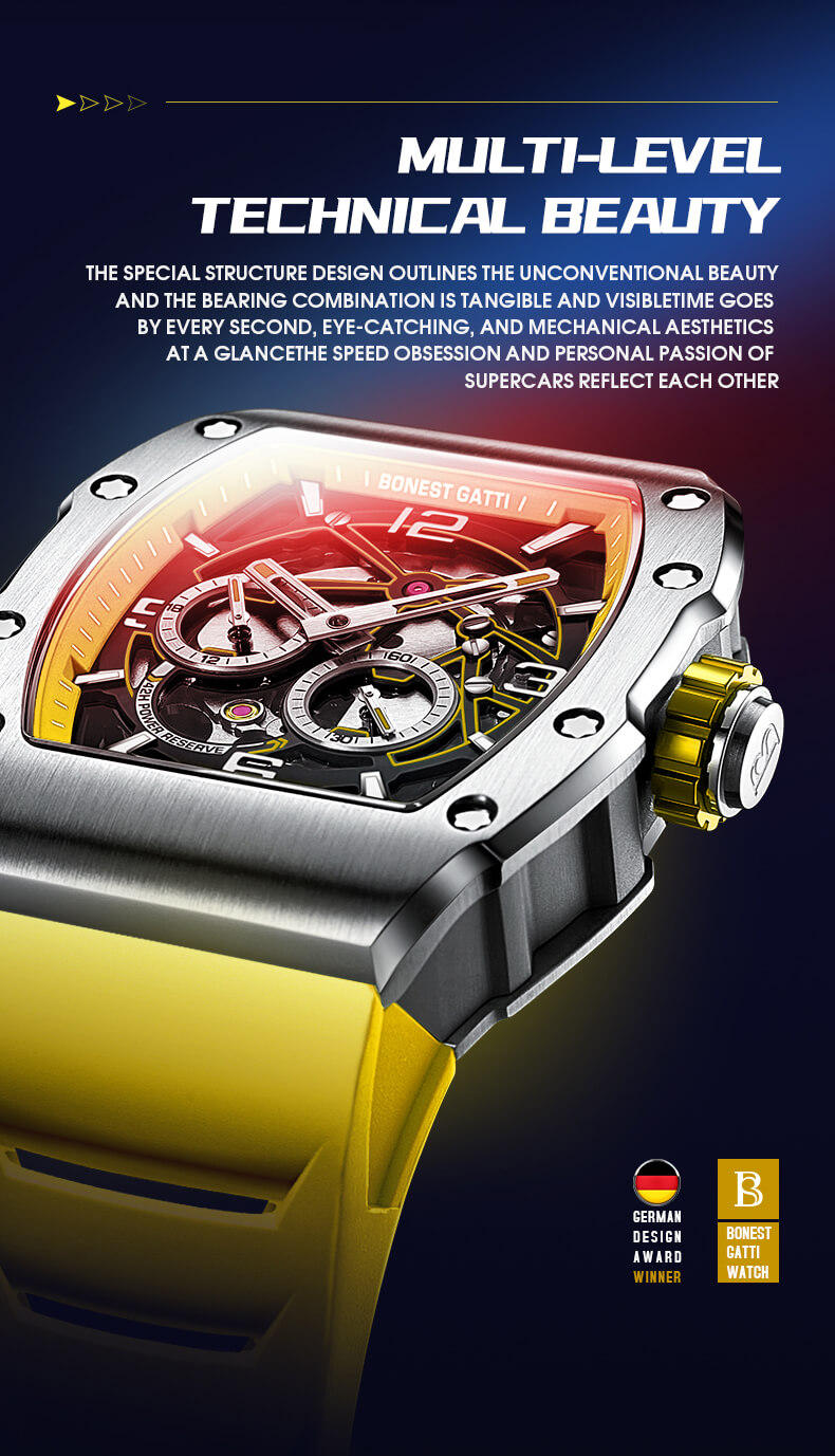 Bonest Gatti Ghost Speed BG9903 là một sản phẩm đồng hồ chất lượng cao với thiết kế tinh tế và cơ chế hoạt động độc đáo. Được sản xuất bởi thương hiệu đồng hồ nổi tiếng Bonest Gatti, BG9903 là một trong những mẫu đồng hồ cơ hiện đại và sang trọng nhất trên thị trường.
