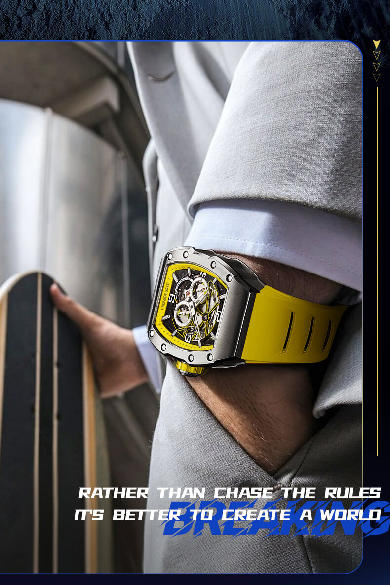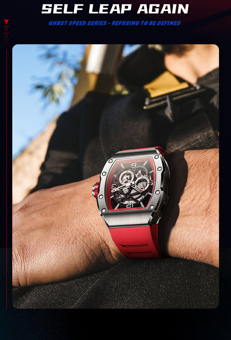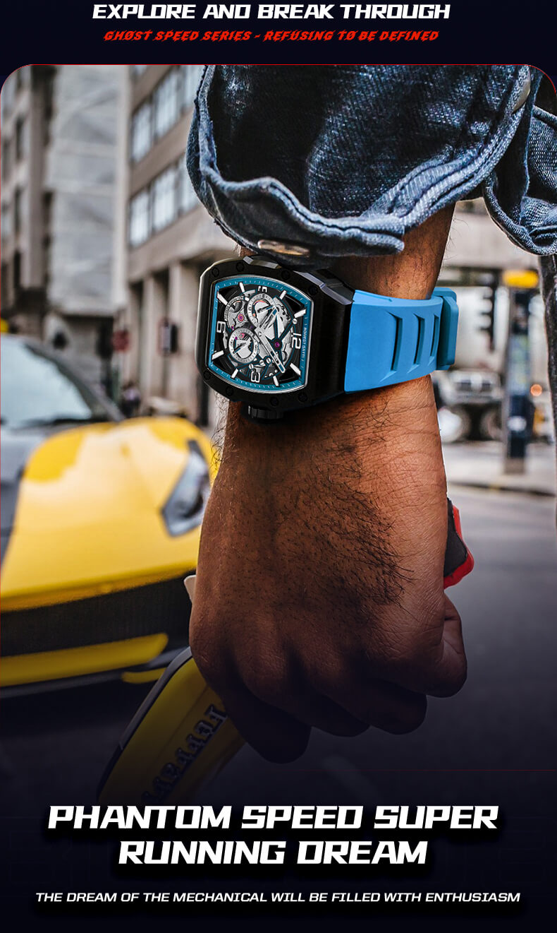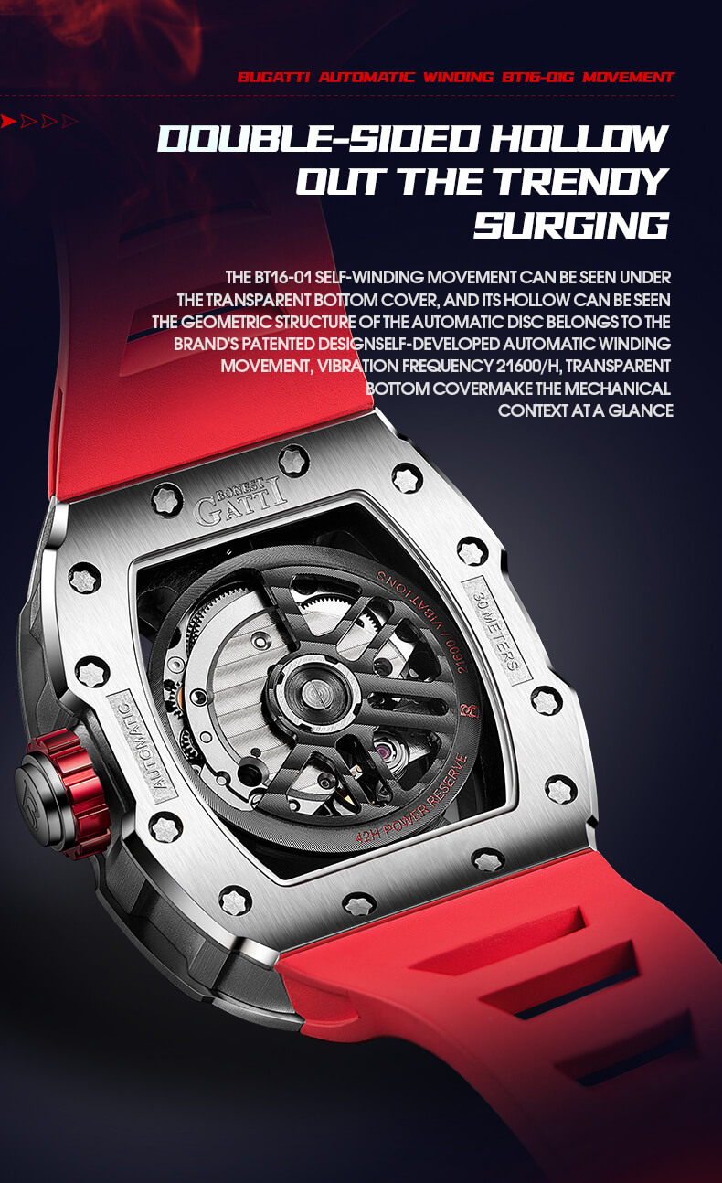Đặc điểm nổi bật | - Phong cách thiết kế Sport watch dành cho những người đam mê thể thao tốc độ. - Chức năng: + Lộ tim tại góc 7h. + Case back xuyên thấu. |