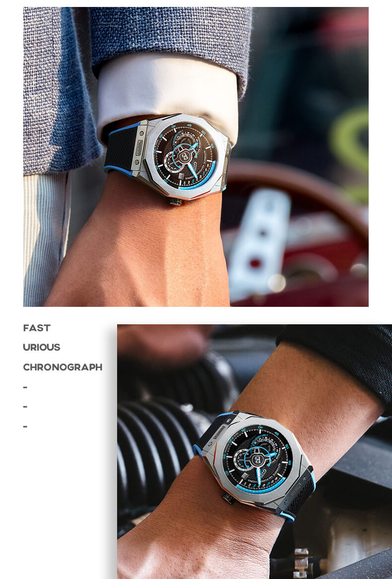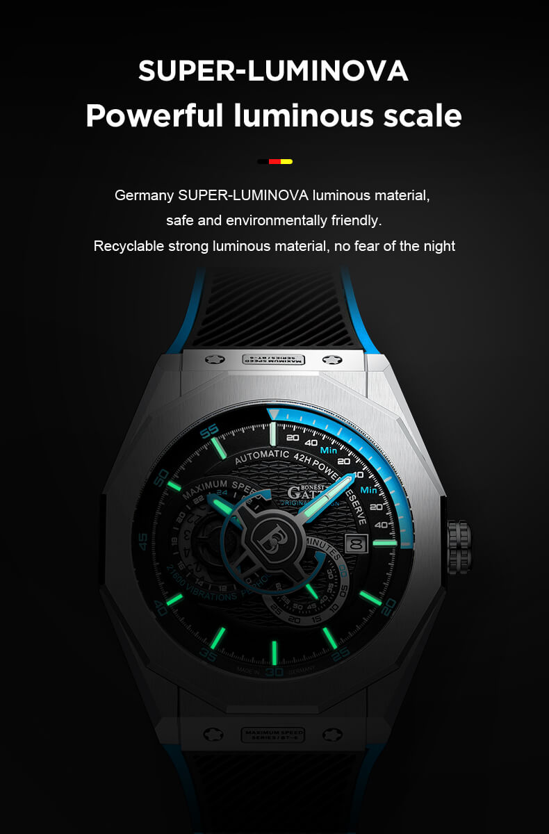 Bên cạnh vẻ ngoài bắt mắt, đồng hồ Bonest Gatti King Speed BG8601 cũng rất chất lượng và đáng tin cậy. Với chất liệu cao cấp, BG8601 rất chắc chắn và có khả năng chống nước ở độ sâu 50 mét, thích hợp cho những hoạt động thể thao ngoài trời. Đồng hồ Bonest Gatti BG8601 cũng có dạ quang ở kim và cọc số giúp cho anh em xem giờ vào buổi tối dễ dàng.