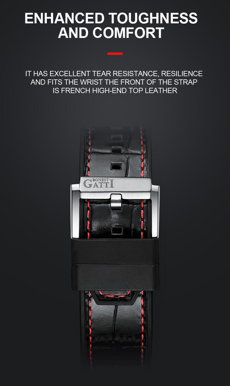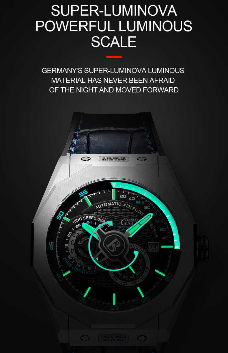 Bên cạnh vẻ ngoài bắt mắt, đồng hồ Bonest Gatti King Speed BG8601 cũng rất chất lượng và đáng tin cậy. Với chất liệu cao cấp, BG8601 rất chắc chắn và có khả năng chống nước ở độ sâu 50 mét, thích hợp cho những hoạt động thể thao ngoài trời. Đồng hồ Bonest Gatti BG8601 cũng có dạ quang ở kim và cọc số giúp cho anh em xem giờ vào buổi tối dễ dàng.