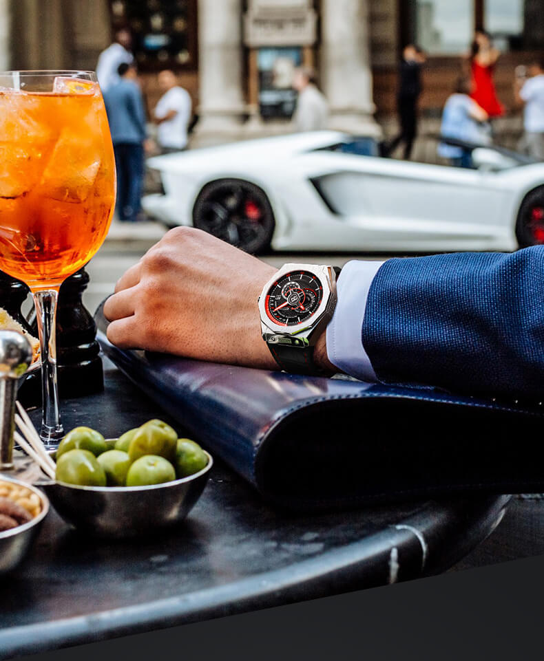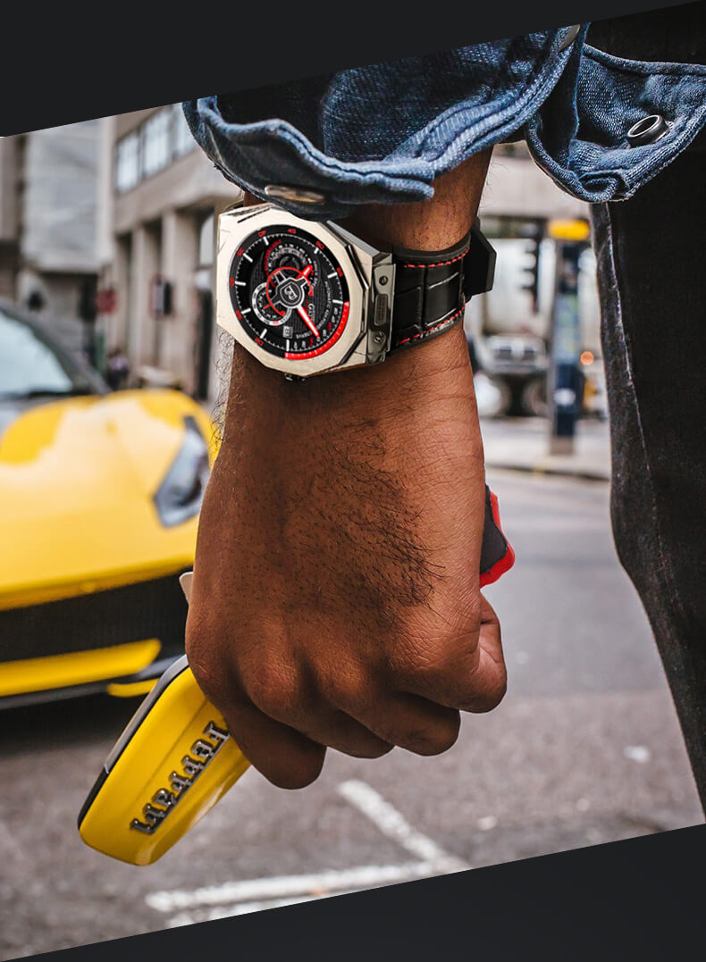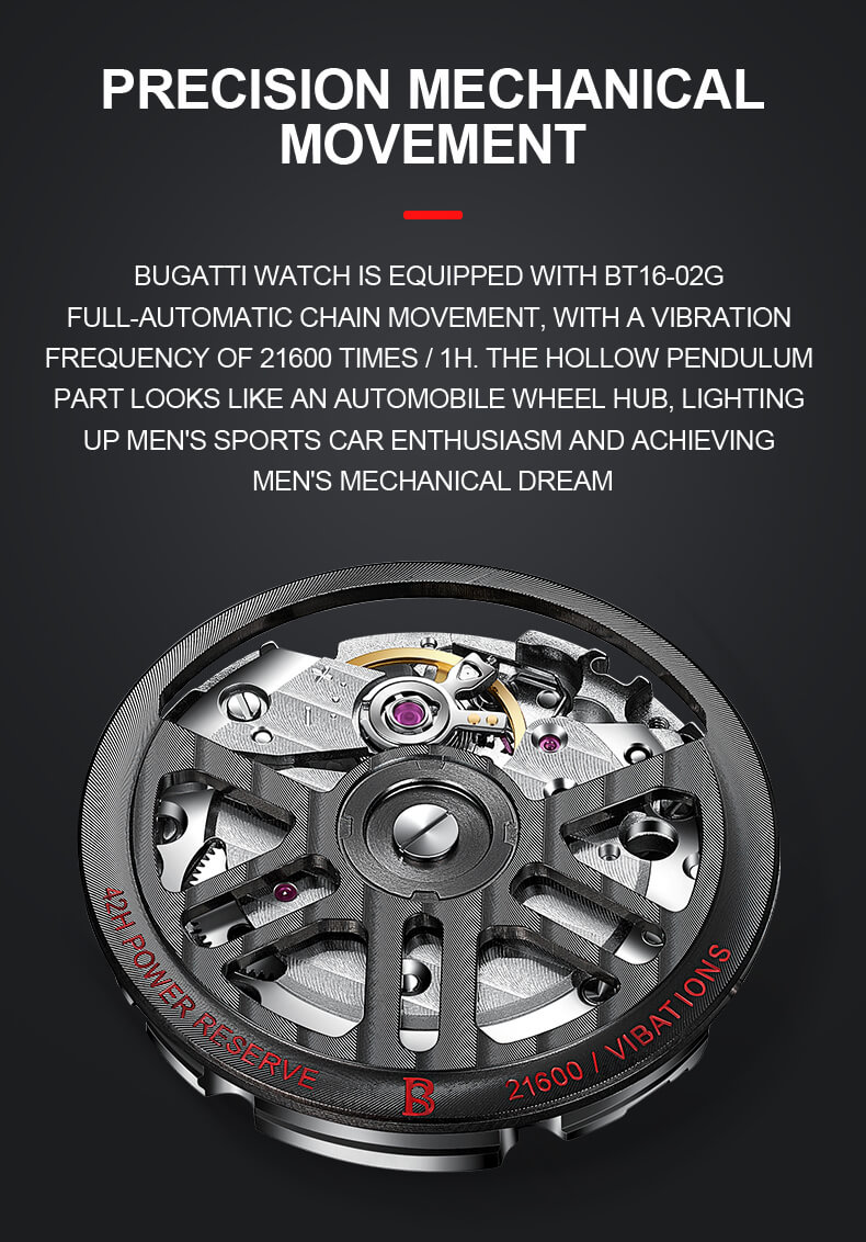 Đặc điểm nổi bật | - Phong cách thiết kế Sport watch dành cho những người đam mê thể thao tốc độ. - Chức năng: + Các mặt đồng hồ nhỏ chỉ ngày, giờ và phút. + Case back xuyên thấu. |