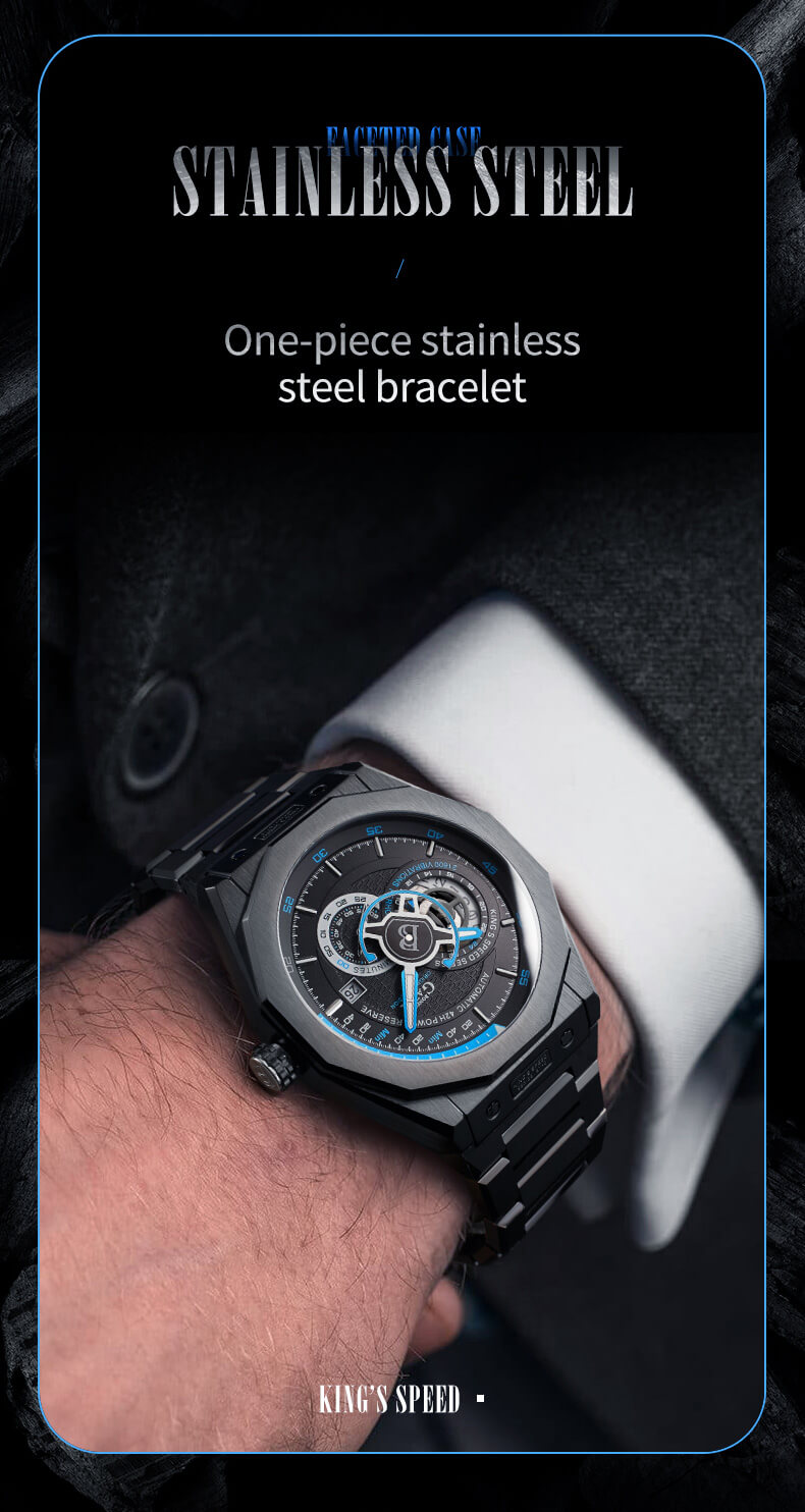 Đồng hồ Bonest Gatti King Speed BG8601 là một sản phẩm đầy phong cách thể thao, được thiết kế với đầy đủ các tính năng và chức năng mà một vận động viên cần có. Với mặt đồng hồ đen sang trọng, dây đeo được làm bằng thép không gỉ 316L sáng bóng, BG8601 đem lại cho người dùng một vẻ ngoài rất nam tính.