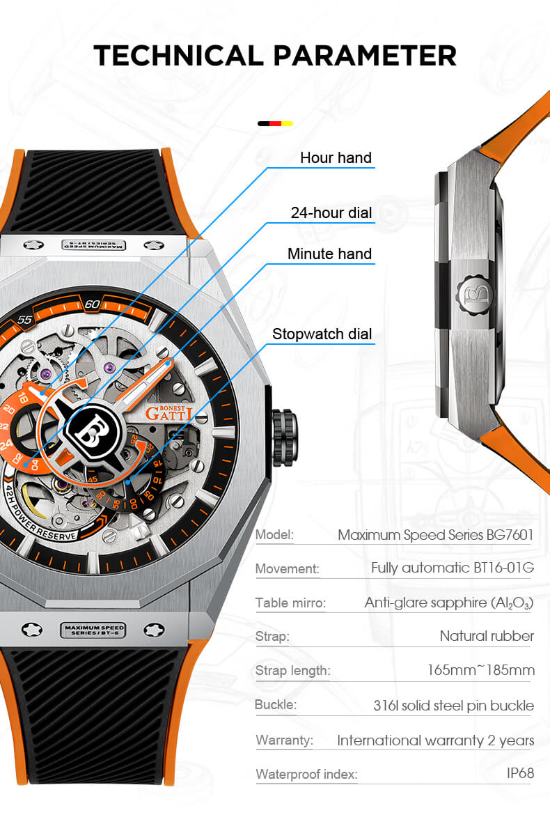 Đồng Hồ Nam Bonest Gatti Maximum Speed BG7601-A3 Automatic được phân phối chính hãng tại Đồng hồ Bảo Thanh - Nơi An Tâm Mua Đồng Hồ Chính Hãng