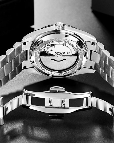 Japan Miyota Automatic Mov't (Máy cơ tự động Miyota - Nhật Bản): - 21 chân kính (Jewels). - Tần số dao động 21.600 vph. - Khả năng trữ cót lên đến hơn 42h. |