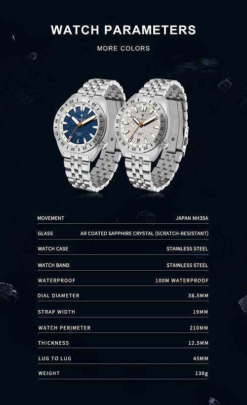 Japan Miyota Automatic Mov't (Máy cơ tự động Miyota - Nhật Bản): - 21 chân kính (Jewels). - Tần số dao động 21.600 vph. - Khả năng trữ cót lên đến hơn 42h. |