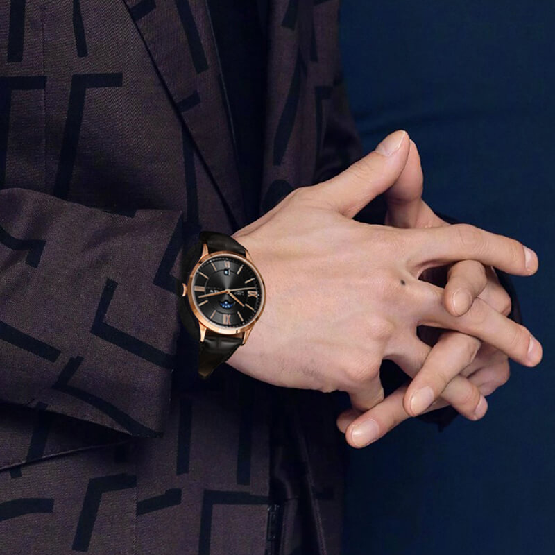- Vỏ mạ PVD cao cấp màu vàng hồng.