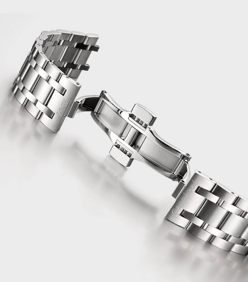 Toàn bộ sản phẩm sử dụng chất liệu thép không gỉ 316L, áp dụng cho cả khung viền lẫn dây đeo, chính vì vậy bạn không phải lo về việc phai màu.