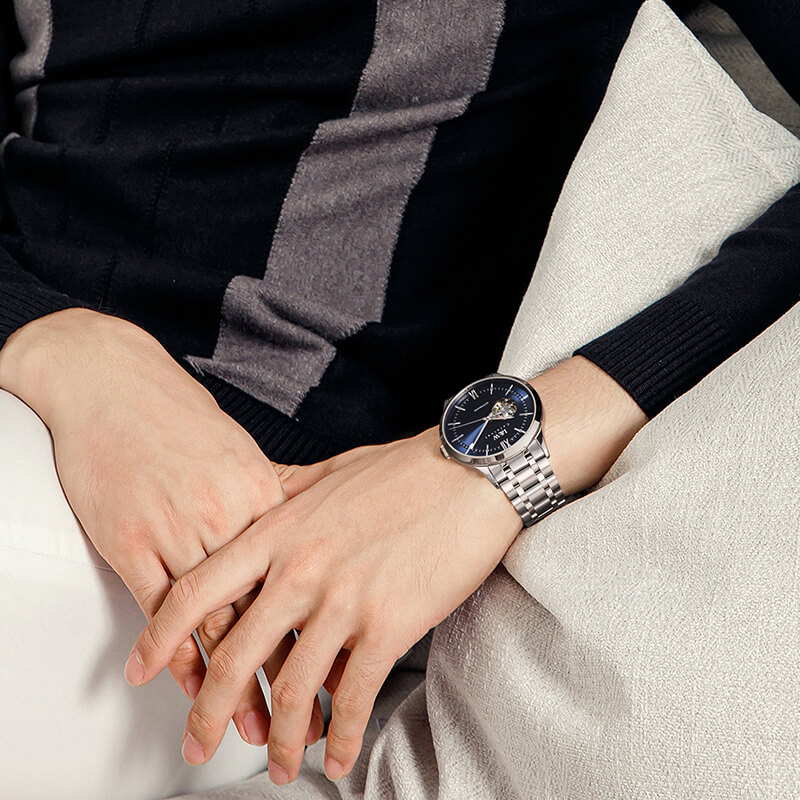 Ngoại hình sang trọng là điểm cộng lớn, đặc biệt phần mặt số được thiết kế ô lộ tim phô diễn hoạt động của bộ máy cơ ngay trước mắt người dùng.