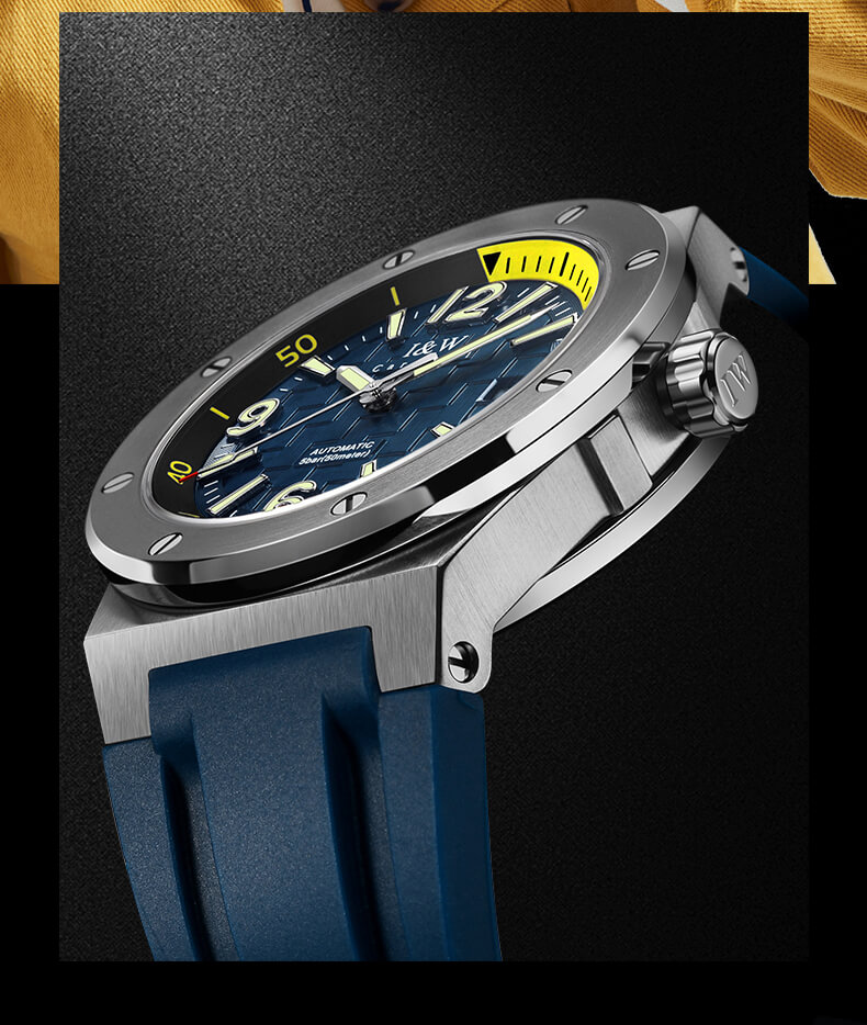 Toàn bộ vỏ được làm bằng thép không gỉ 316L, với tông màu bạc sang bóng càng làm tăng thêm sự nổi bật cho đồng hồ.