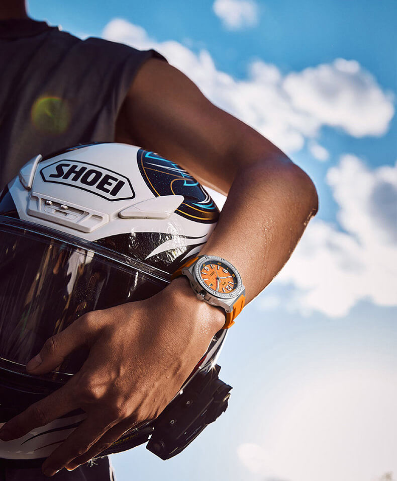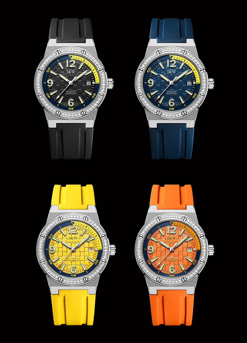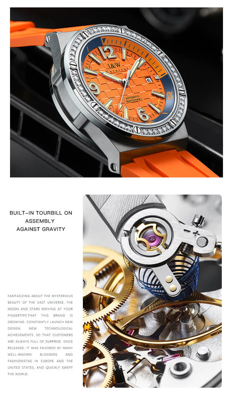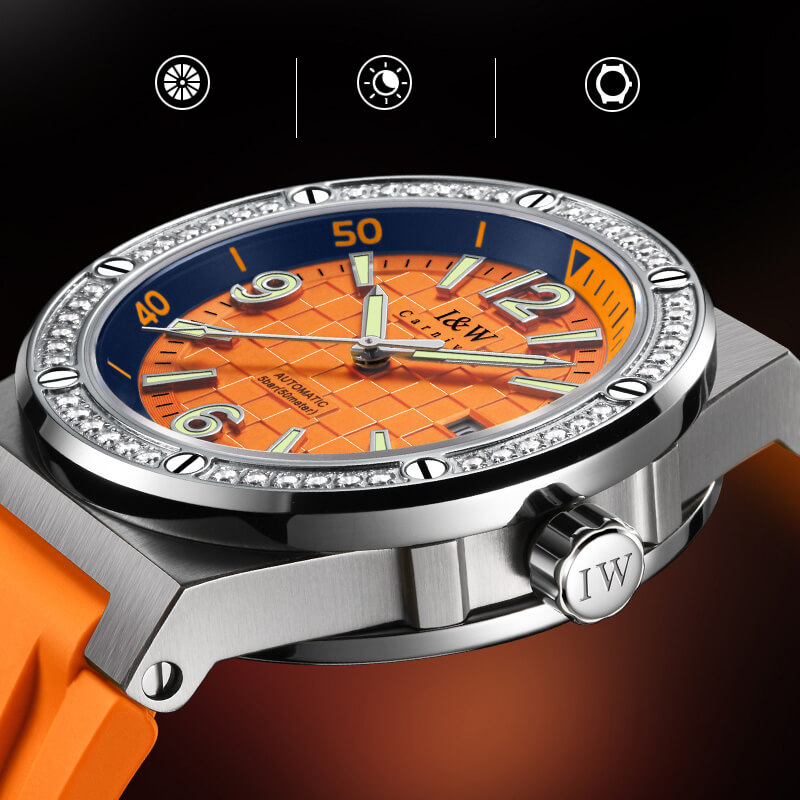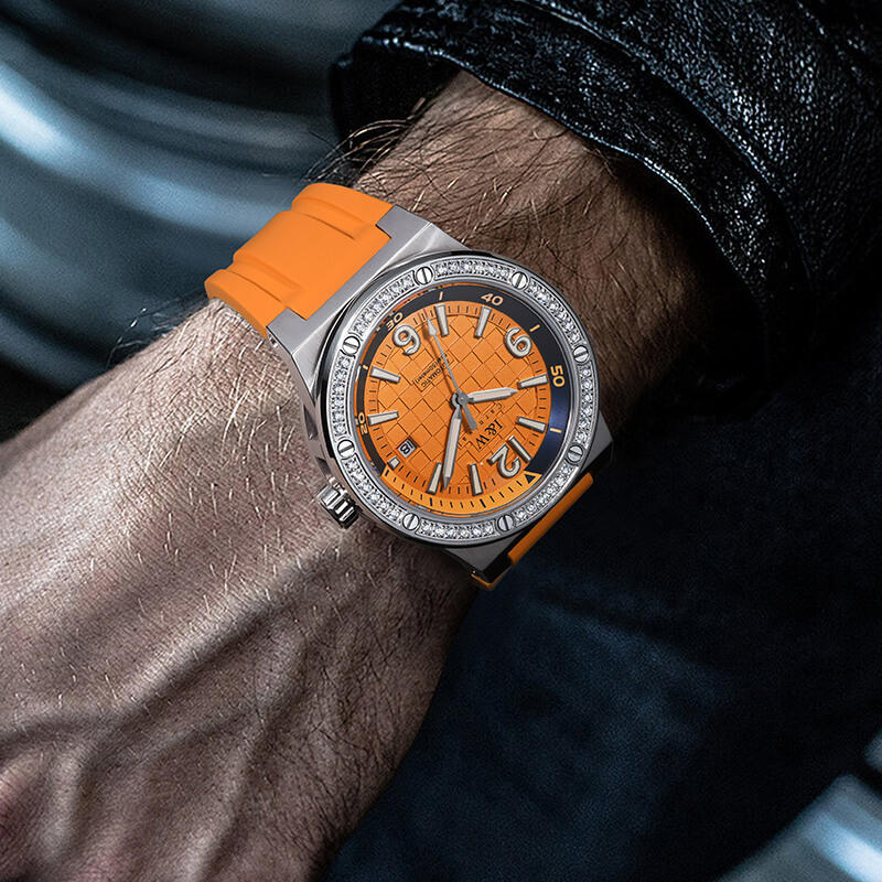Đặc điểm nổi bật | - Phong cách thiết kế Sport watch. - Chức năng: Lịch ngày (01-31) tại vị trí 3 giờ. - Kim và mặt số phủ dạ quang. - Viền đính kim cương nhân tạo. - Case back xuyên thấu. |