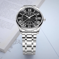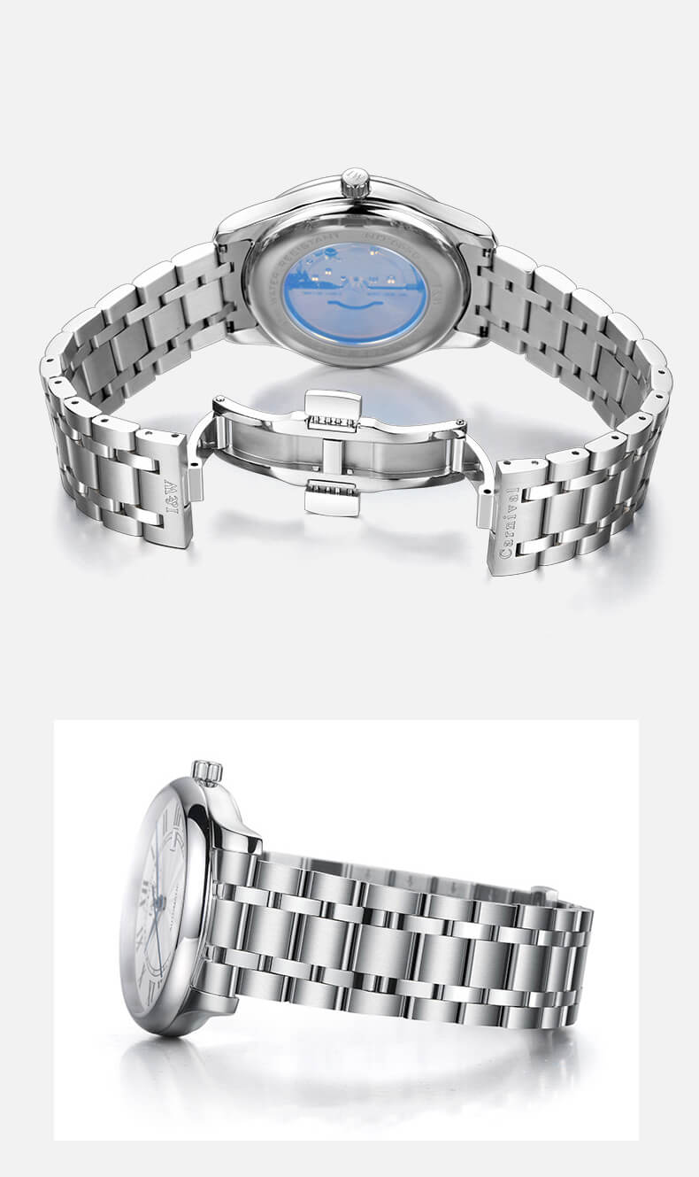 Đặc điểm nổi bật | - Phong cách thiết kế Dress watch. - Chức năng: Lịch ngày (01-31), lịch thứ (Mon-Sun) tại vị trí 3 giờ. - Case back xuyên thấu. |