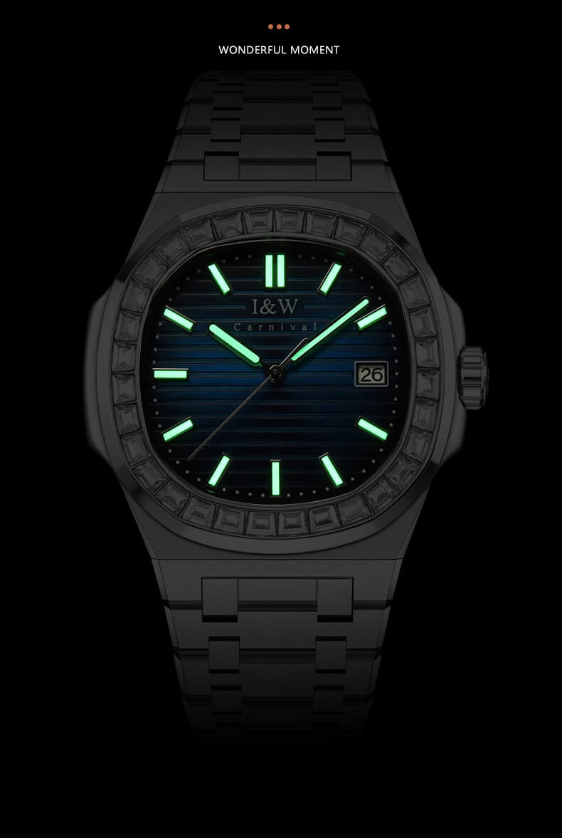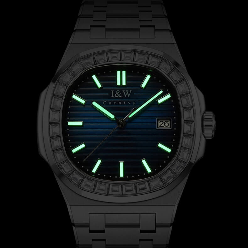 👉 I&W Carnival 721G không chỉ đẹp mắt mà còn thực sự hữu ích. Kim và cọc số được phủ lớp dạ quang giúp bạn dễ dàng nhận biết giờ trong điều kiện thiếu ánh sáng.