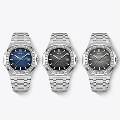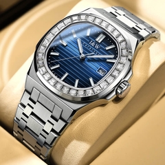 👉 Mặt số được chia thành các đường kẻ bằng nhau, tạo ra một cảm giác độc đáo phá cách. Viền mặt đồng hồ được đính đá lấp lánh, tạo điểm nhấn lộng lẫy và thu hút ánh nhìn từ mọi góc độ.
