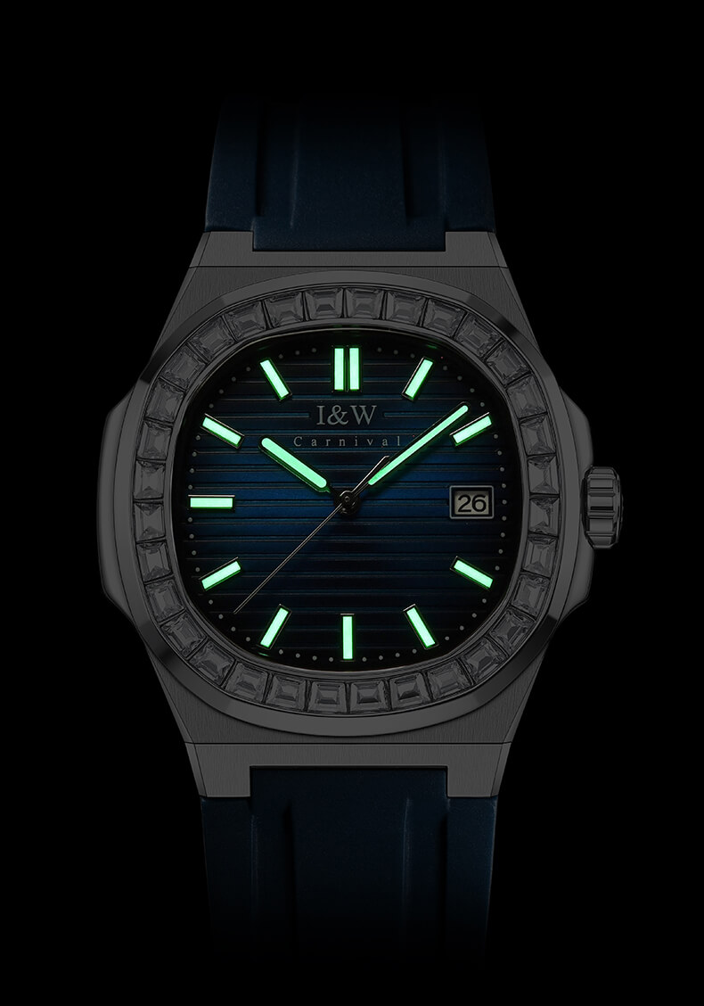 👉 I&W Carnival 721G không chỉ đẹp mắt mà còn thực sự hữu ích. Kim và cọc số được phủ lớp dạ quang giúp bạn dễ dàng nhận biết giờ trong điều kiện thiếu ánh sáng.