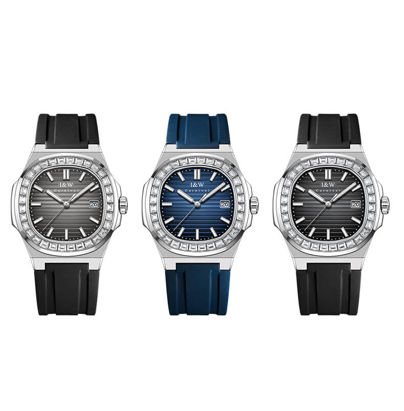 👉 Ngoài ra, I&W Carnival 721G mang đến cho người đeo sự lựa chọn đa dạng. Với ba gam màu xanh, đen và xám. Mỗi màu sắc đều mang một nét riêng, từ sự trẻ trung của màu xanh, sự lịch lãm của màu đen đến tính tinh tế của màu xám. Hơn nữa, để đáp ứng sở thích và phong cách riêng của mỗi người, I&W Carnival 721G cung cấp 3 loại dây đeo khác nhau: dây thép, dây da và dây silicon. Điều này cho phép bạn dễ dàng thay đổi dây đeo để phù hợp với mọi hoàn cảnh và trang phục khác nhau.