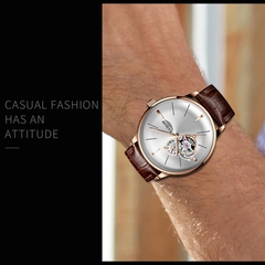 Đặc điểm nổi bật | - Phong cách thiết kế Dress watch. - Chức năng: Lịch 24 giờ. - Lộ cơ Open heart - Kim giờ và kim phút phủ dạ quang. - Case back xuyên thấu. |