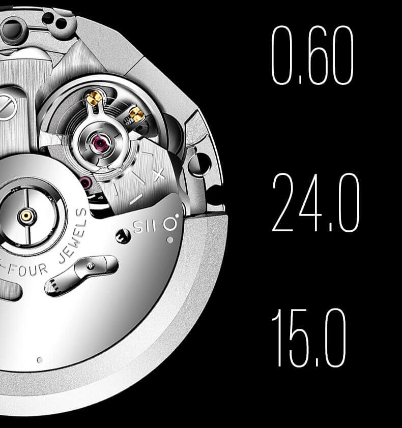 Kiểu máy | Japan Seiko Automatic Mov't (Máy cơ tự động Seiko - Nhật Bản): - 24 chân kính (Jewels). - Tần số dao động 21.600 vph. - Khả năng trữ cót lên đến hơn 42h. |