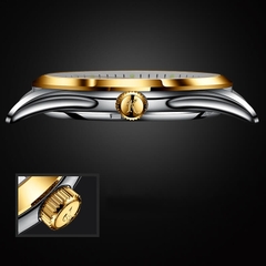 Đặc điểm nổi bật | - Phong cách thiết kế Dress watch. - Chức năng: Lịch ngày (01-31), Lịch thứ tại vị trí 3 giờ. - Kim giờ và kim phút phủ dạ quang. - Case back xuyên thấu. |