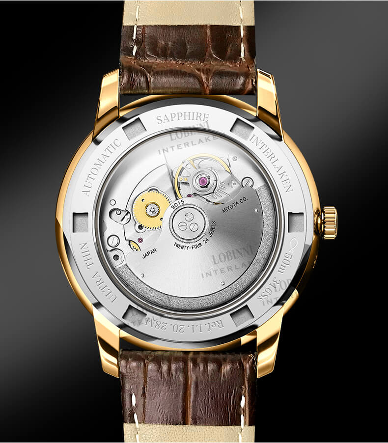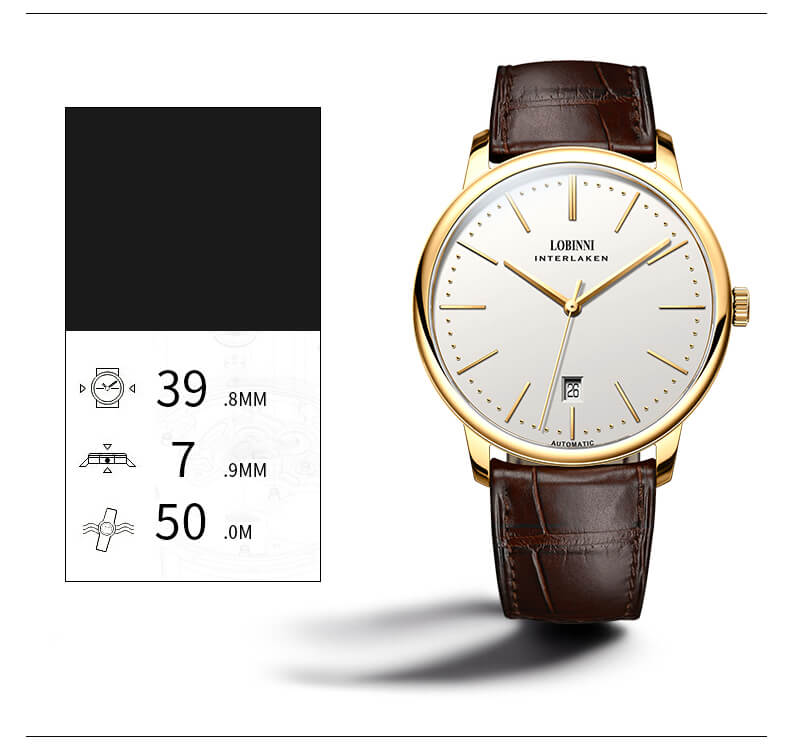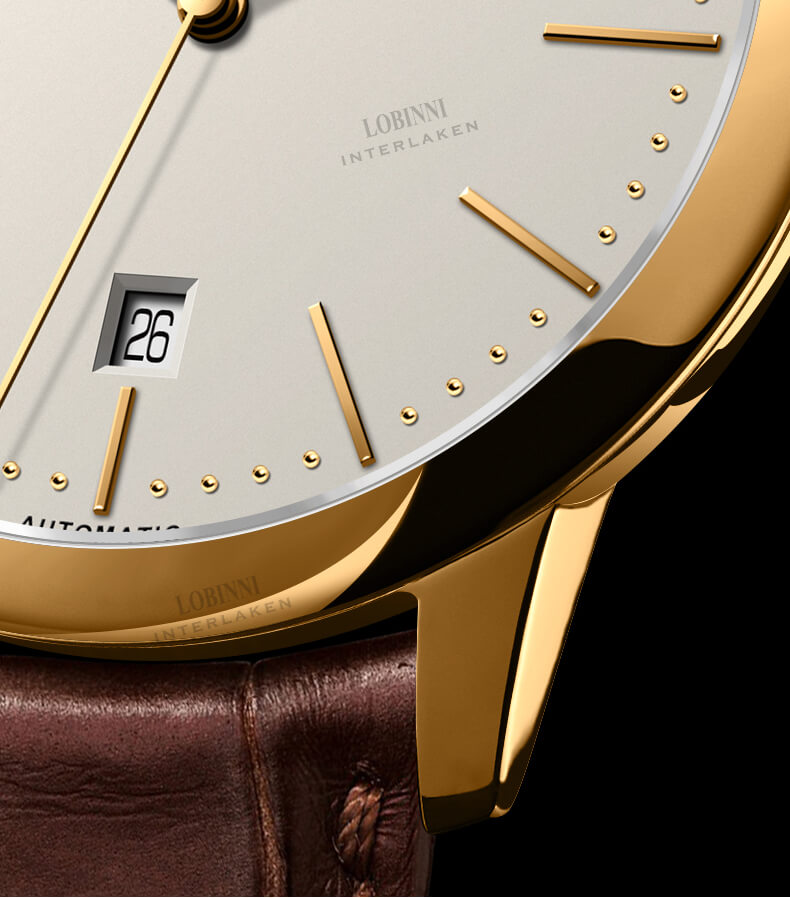 THIẾT KẾ ẤN TƯỢNG với độ dày chỉ 7,9mm cho 1 chiếc đồng hồ Automatic. Cỗ máy LOBINNI NO.12028 được đánh giá là một trong những cố máy automatic mỏng nhất thế giới.