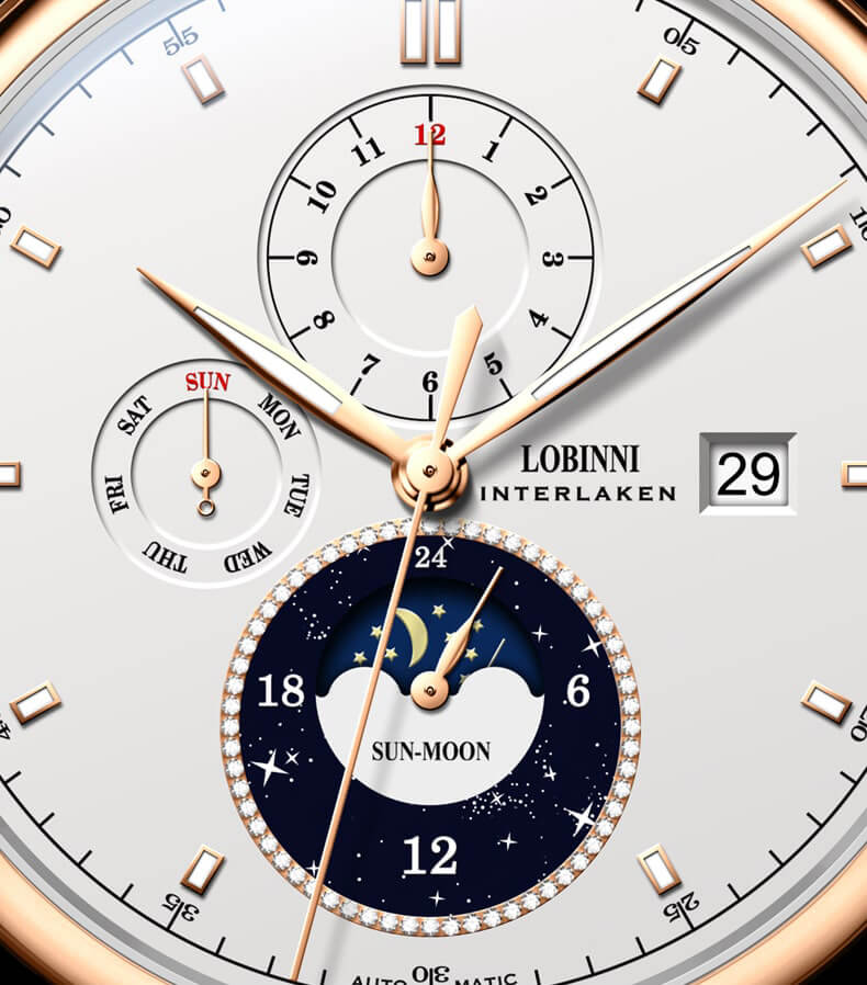 Với bề dày lịch sử hơn 55 năm, cũng như kinh nghiệm trong việc chế tác đồng hồ cơ khí, việc lên ý tưởng và thiết kế một chiếc đồng hồ Sun and Moon không phải là quá khó với thương hiệu đồng hồ uy tín, chất lượng hàng đầu như Lobinni.