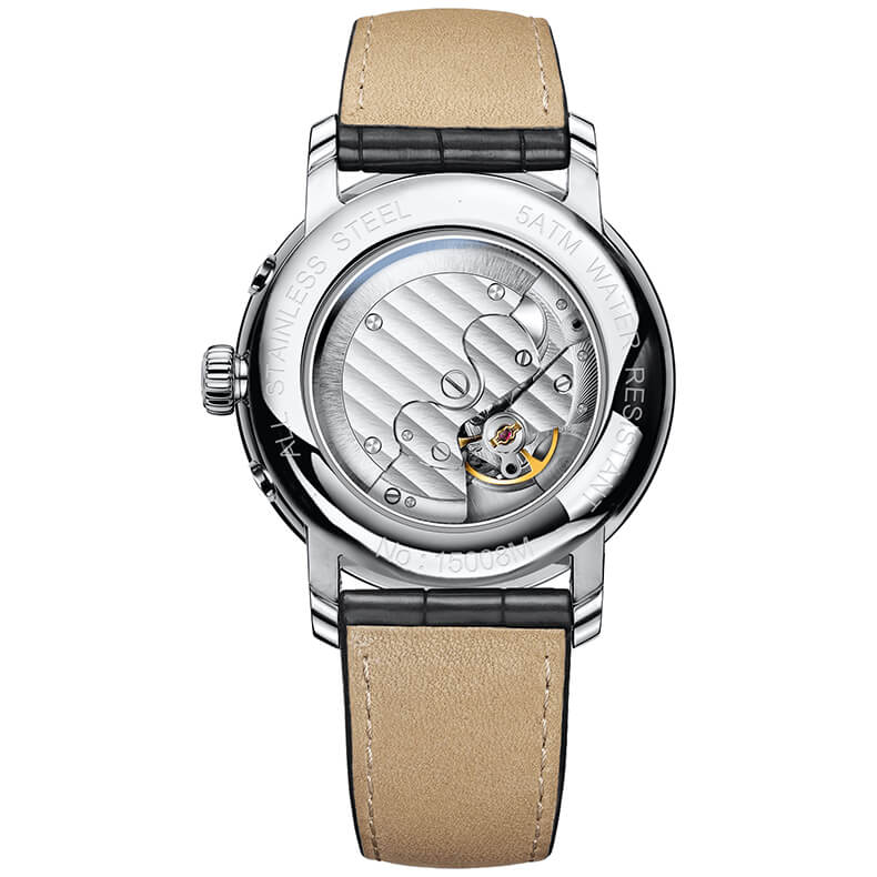 Vận hành mạnh mẽ với máy cơ tự động, với 21 chân kính, tần số dao động 21600vph và trữ cót hơn 40 tiếng.