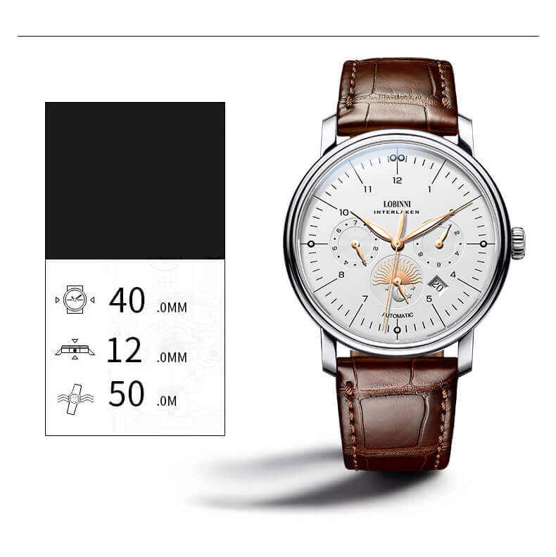 Cụ thể, chiếc Đồng hồ nam chính hãng Lobinni No.15008 hội tụ đầy đủ những yếu tố sau: