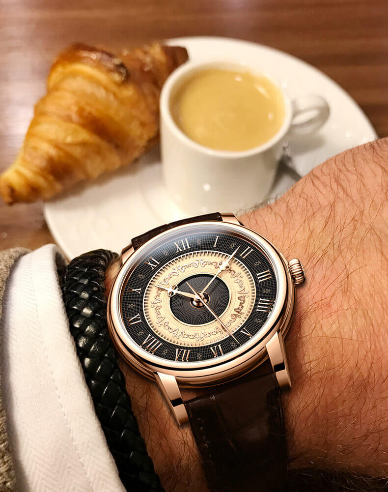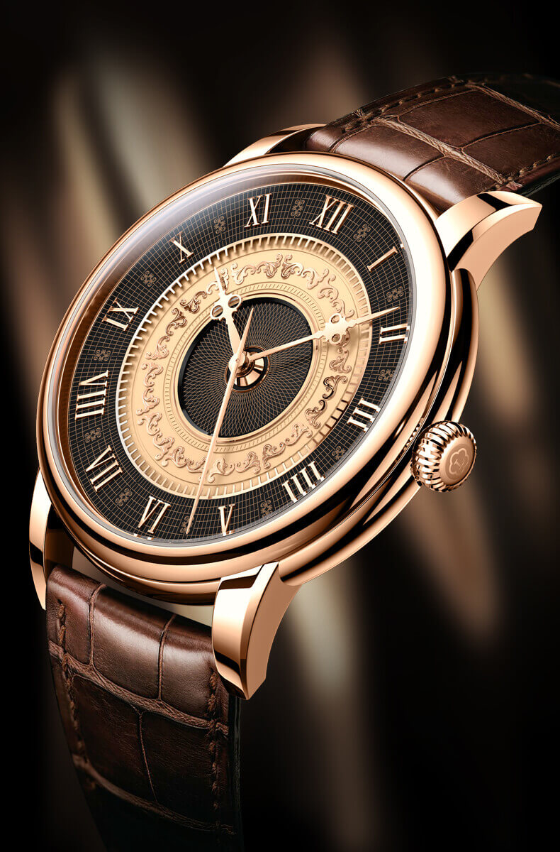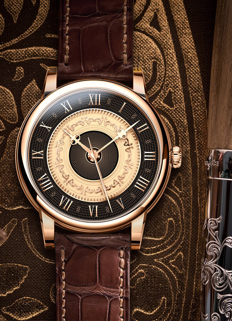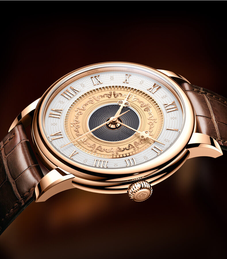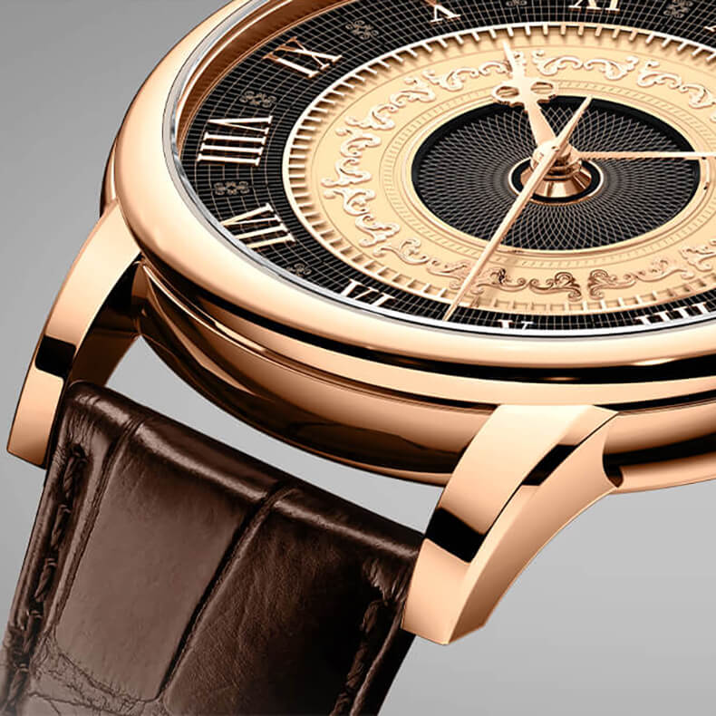 Mặt số được khảm vân Guilloche đẳng cấp - chi tiết làm nên giá trị nghệ thuật thường xuất hiện trên đồng hồ Thụy Sỹ cao cấp.