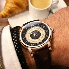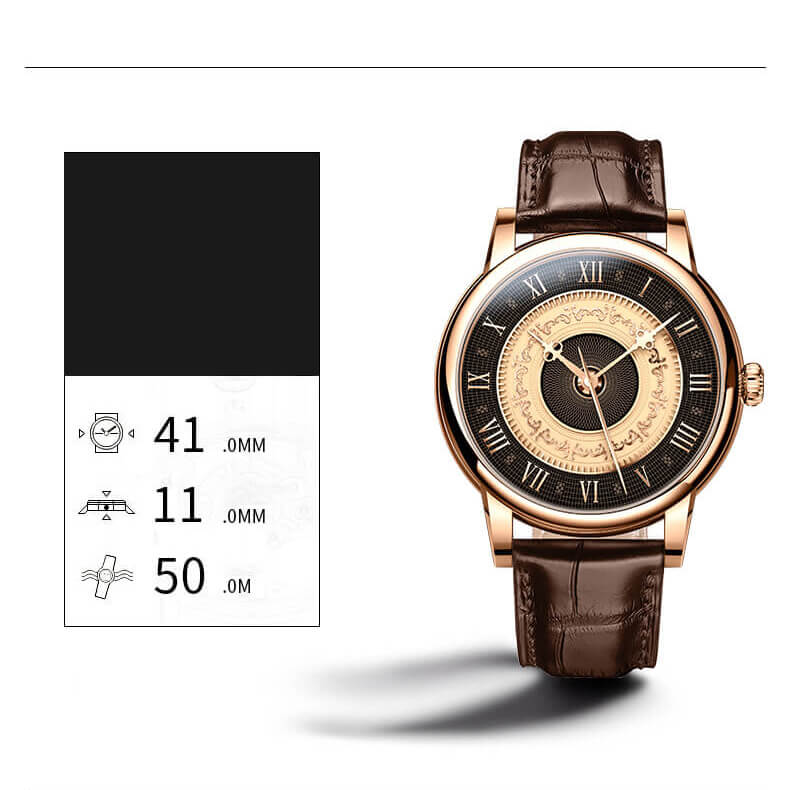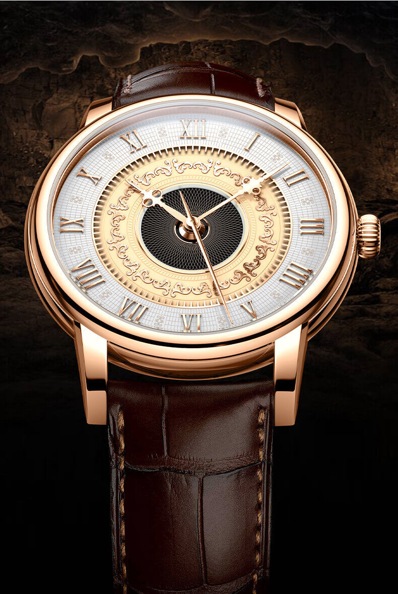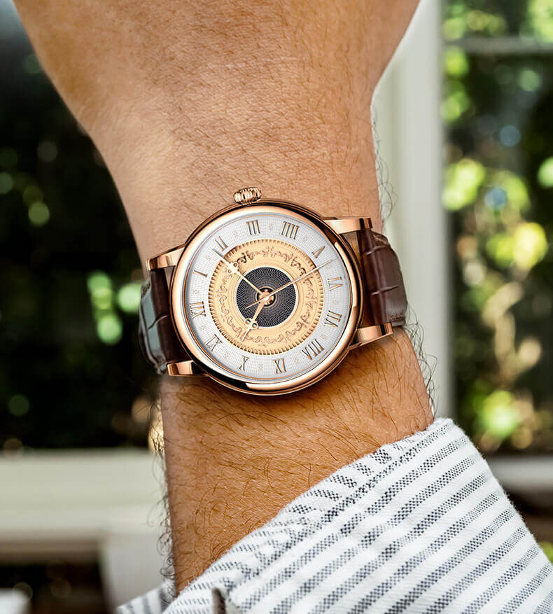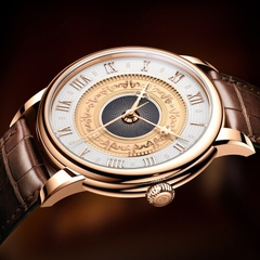 Thiết kế mặt số đơn giản nhưng nổi bật nhờ được mạ vàng hồng, các chi tiết tinh tế được điểm tô sự sang trọng, lịch lãm.