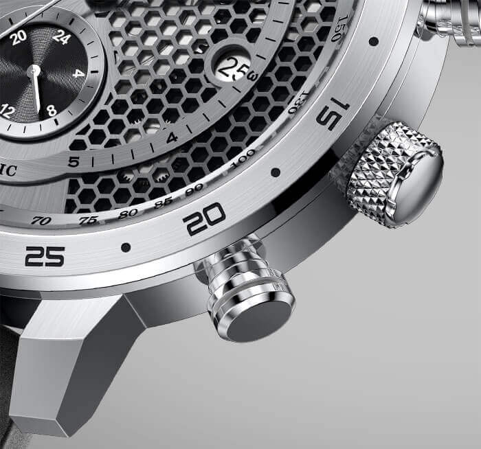 Đồng thời toát lên nét đẹp thể thao nhờ thiết kế lộ cơ Open Heart, mặt số 6 kim, 3 núm nổi bật điểm nam tính, mạnh mẽ của chủ sở hữu. Đây là điểm nhấn ấn tượng nhất thiết kế này trở thành cái tên được yêu thích hiện nay.