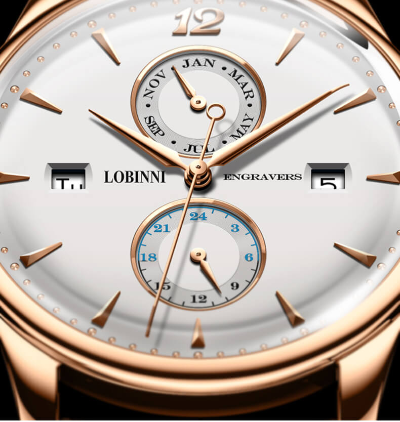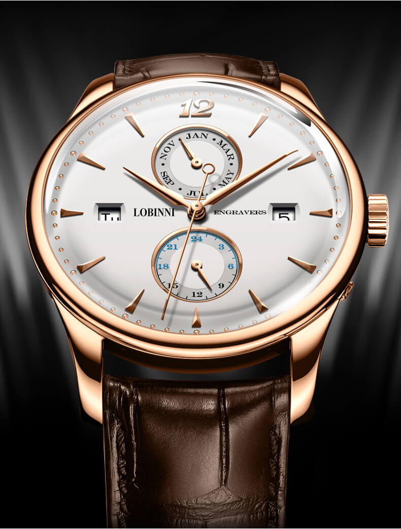 Với bề dày lịch sử và kinh nghiệm trong ngành công nghiệp sản xuất đồng hồ, Lobinni luôn đưa chúng ta đi từ bất ngờ này sang bất ngờ khác bởi những thiết kế tinh tế, cuốn hút. Điển hình như chiếc Lobinni No.1803 này.