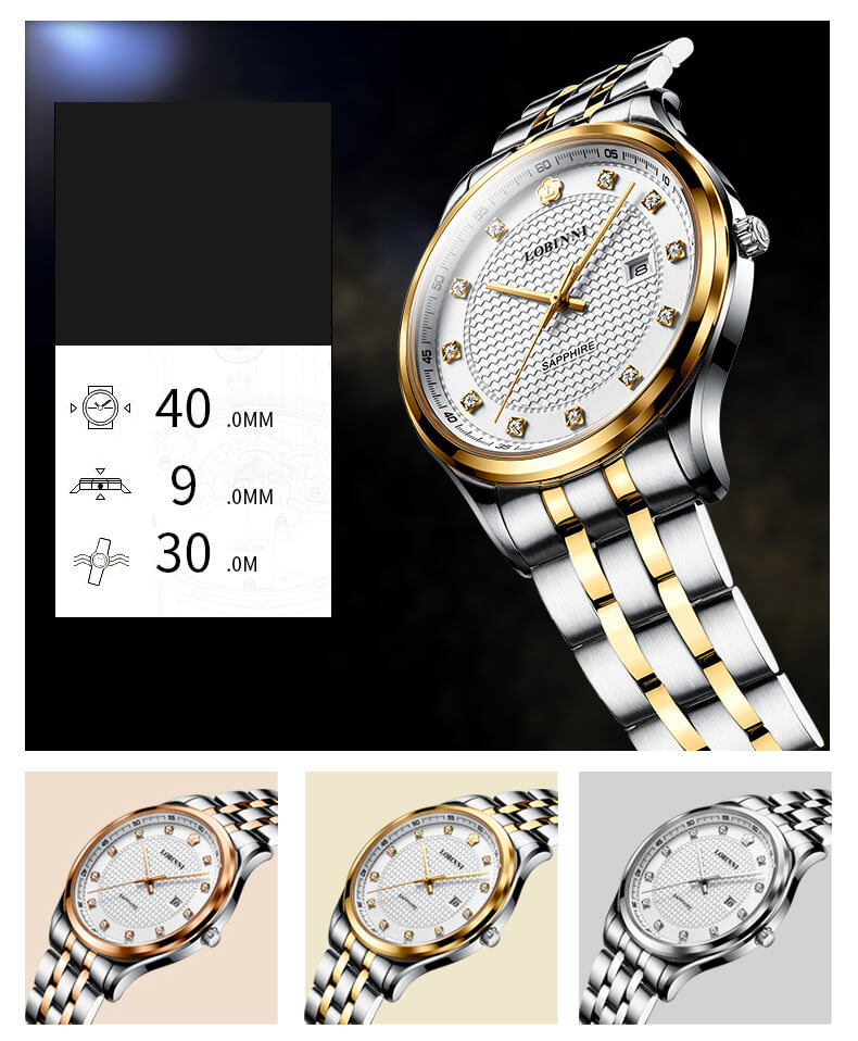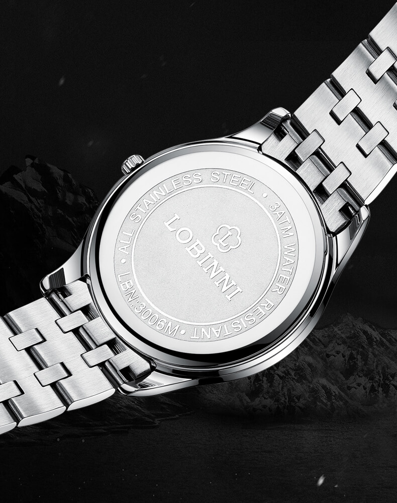 Chiếc đồng hồ nam chính hãng Lobinni No.3006 sẽ giúp các quý ông vừa có vẻ ngoài lịch lãm vừa tỏa ra sức cuốn hút trước mọi ánh nhìn.