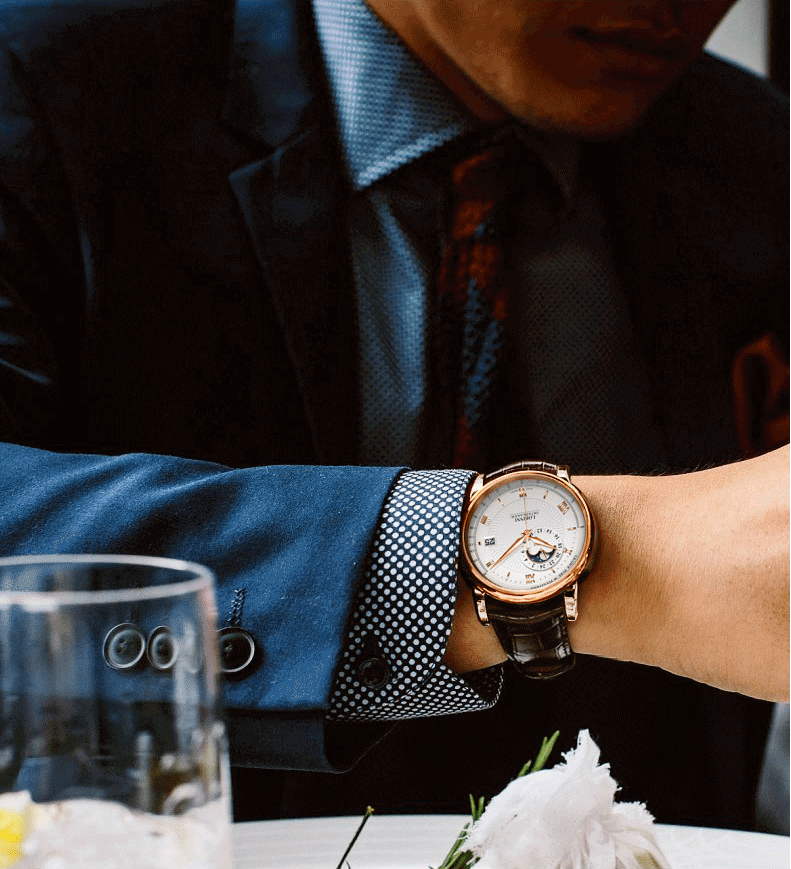 Mặt số La Mã và kim chỉ thời gian được mạ vàng sang trọng, tạo nên sự cuốn hút khó rời mắt ngay từ ánh nhìn đầu tiên.