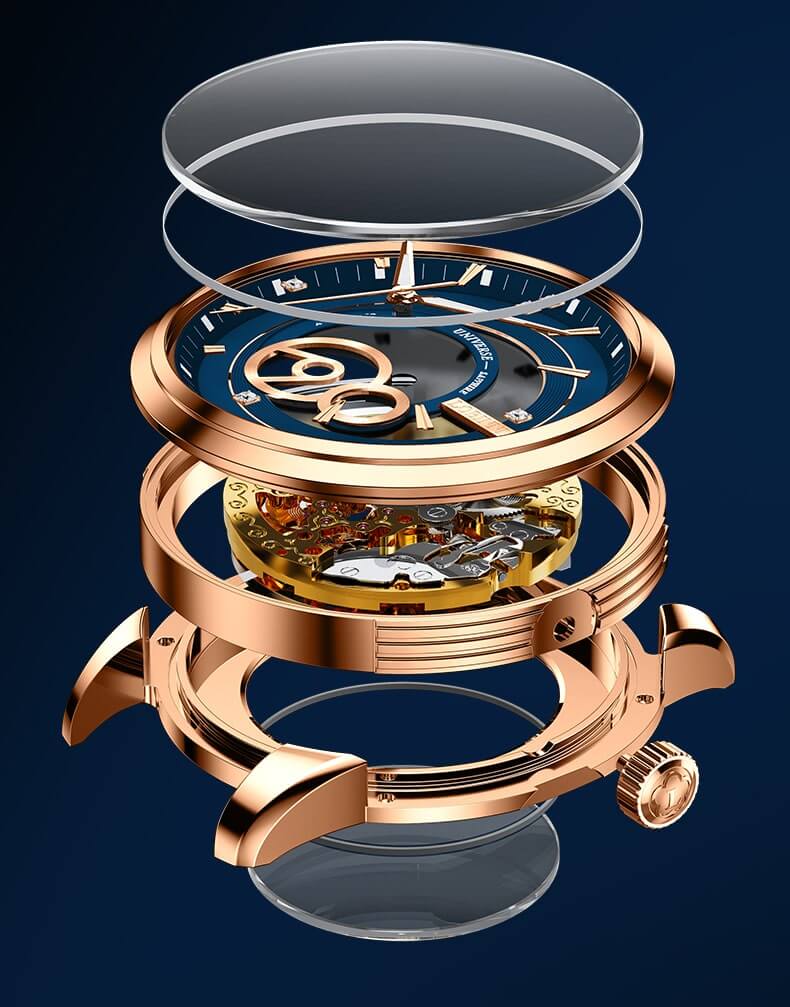Dưới lớp kính SAPPHIRE NGUYÊN KHỐI là thiết kế mặt với 2 tông màu XANH HUYỀN BÍ kết hợp cùng VÀNG PHÚ QUÝ tạo nên một tổng thể cực kỳ thời thượng.