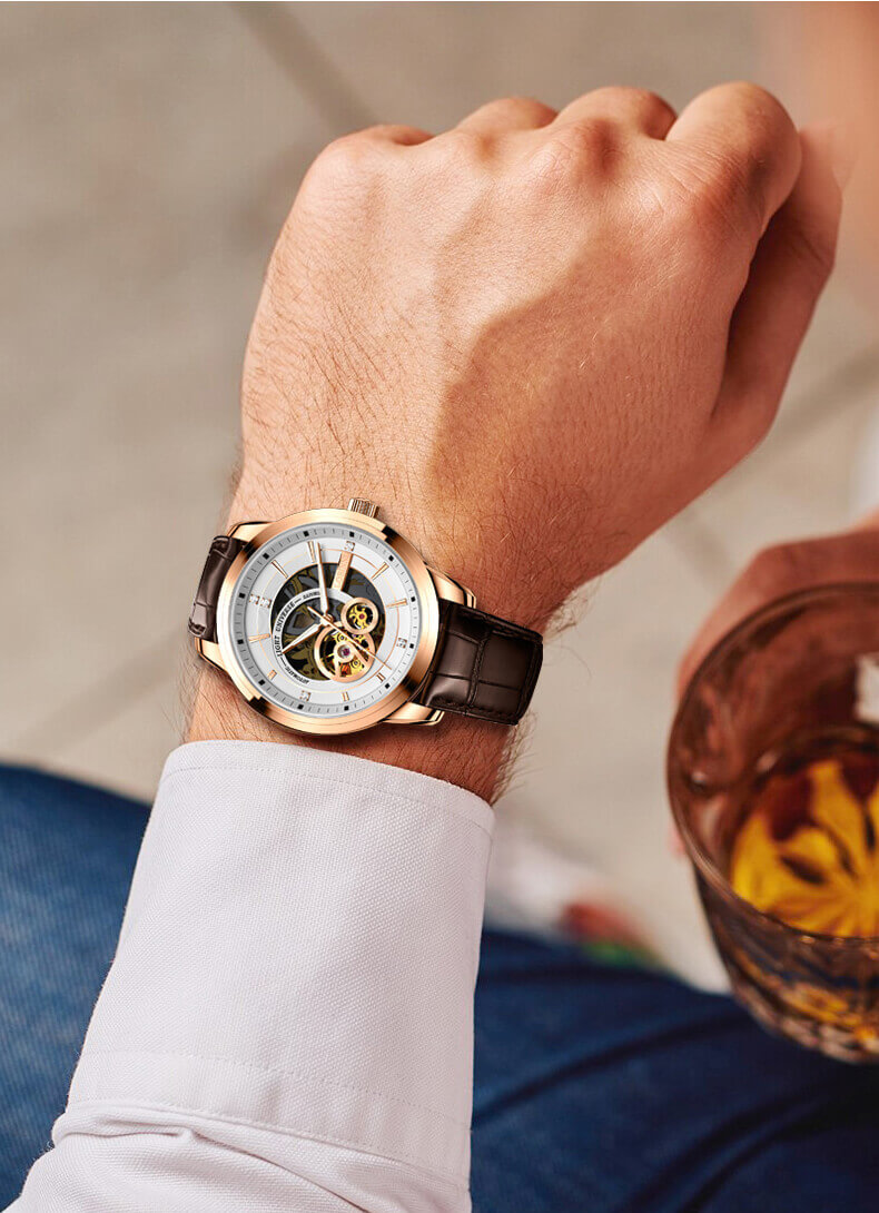 Không hở lộ toàn thân táo bạo như những nàng Skeleton nóng bỏng, không e ấp như những thiết kế hở van tim thông thường, cỗ máy khiến đấng mày râu mê mẩn với kiểu thiết kế lộ cơ phá cách độc đáo, khéo khoe những chuyển động mê hoặc của bánh răng cơ khí.