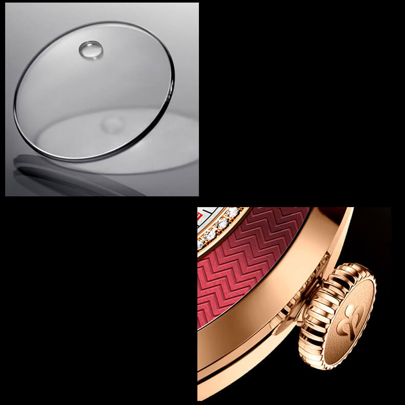 - Mặt số có kích thước chỉ 41mm phù hợp cho gần như mọi loại cổ tay. Kết hợp kính Sapphire vát cong cho góc nhìn rộng, quan sát dễ dàng.