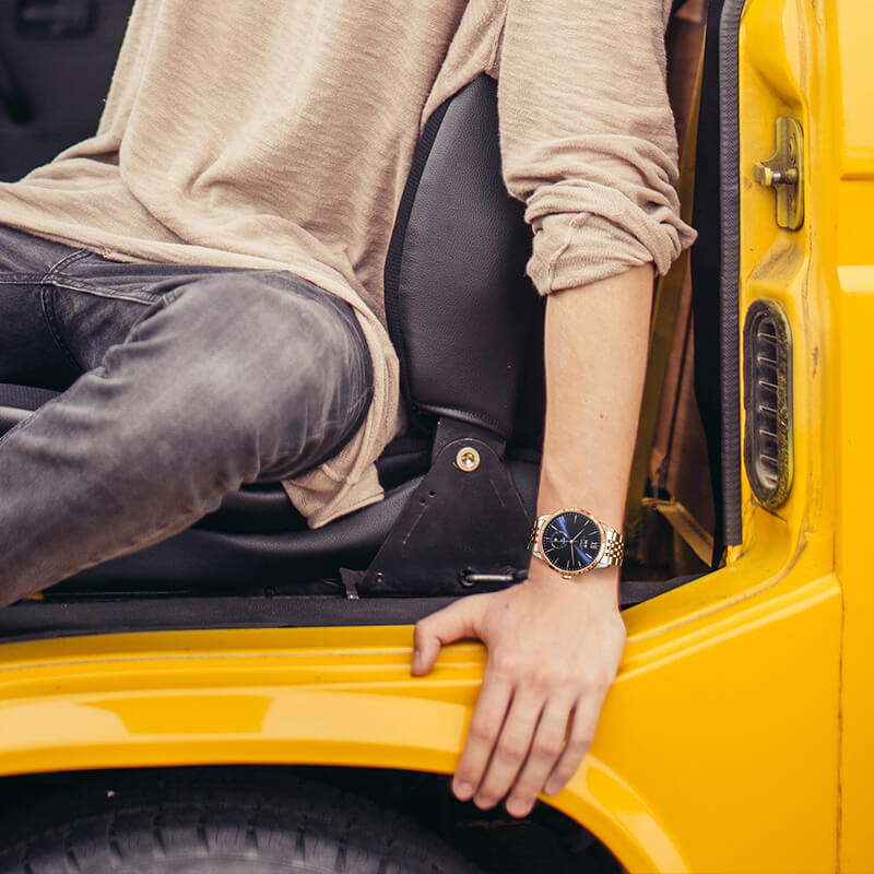 - Vỏ mạ PVD cao cấp màu vàng hồng.