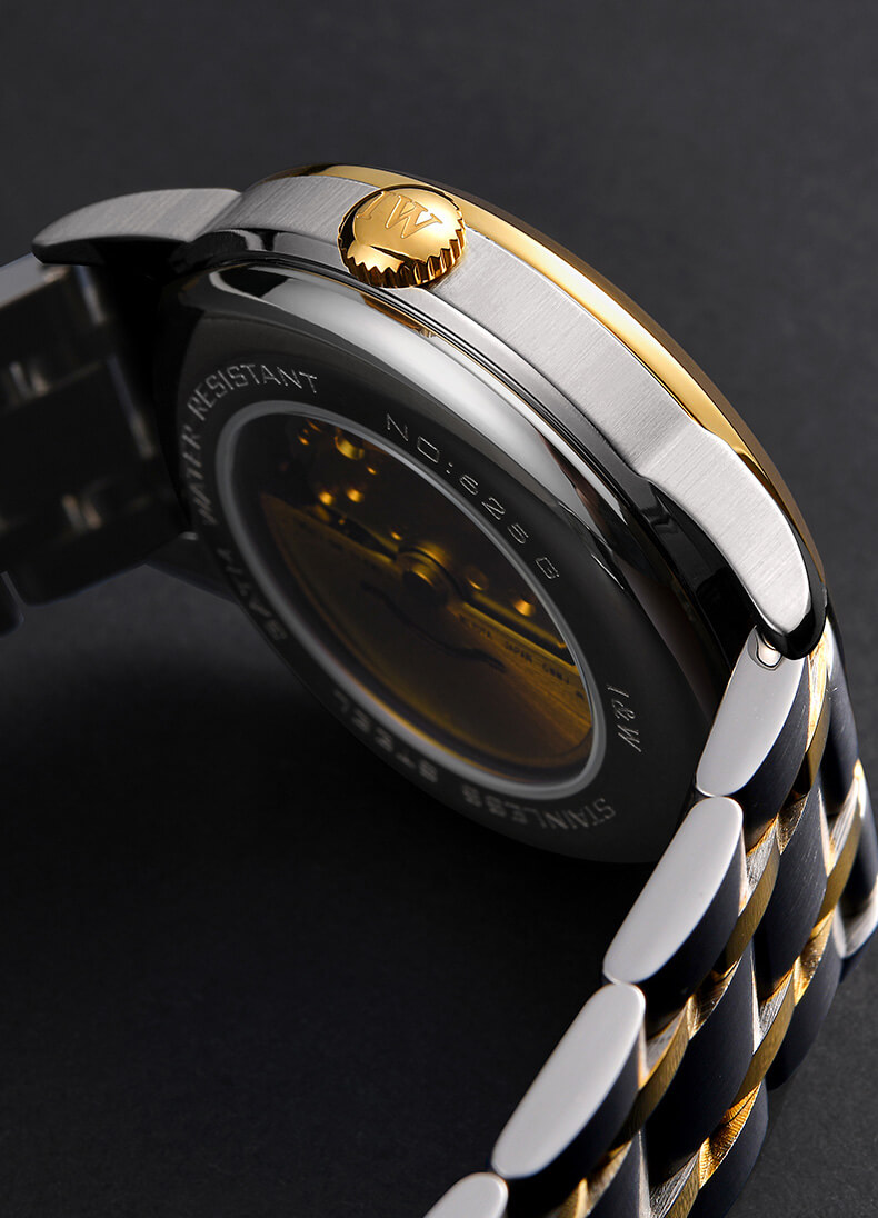Đặc điểm nổi bật | - Phong cách thiết kế Dress watch. - Mặt số cọc kết hợp số La Mã. - Chức năng: Lịch ngày (01-31), lịch thứ thiết kế dạng đĩa quay (Mon-Sun) tại vị trí 6 giờ. - Vỏ mạ PVD cao cấp. - Case back xuyên thấu. |
