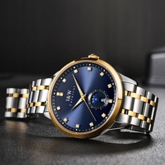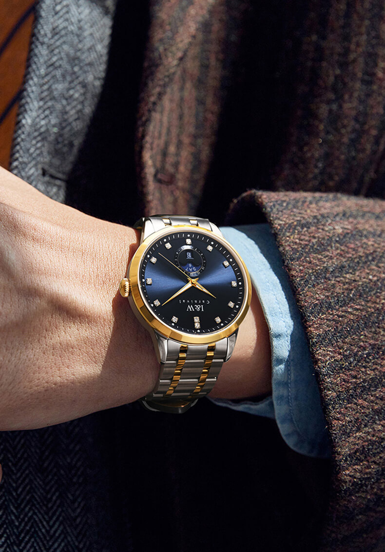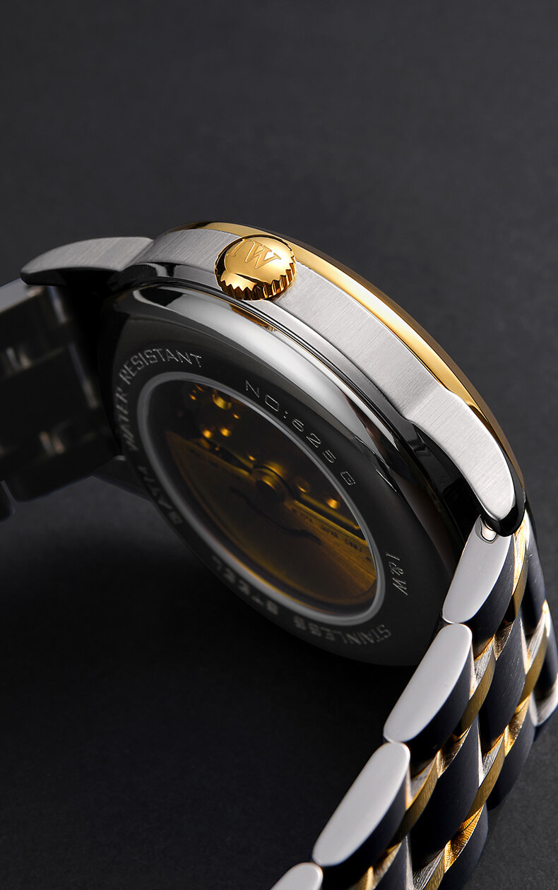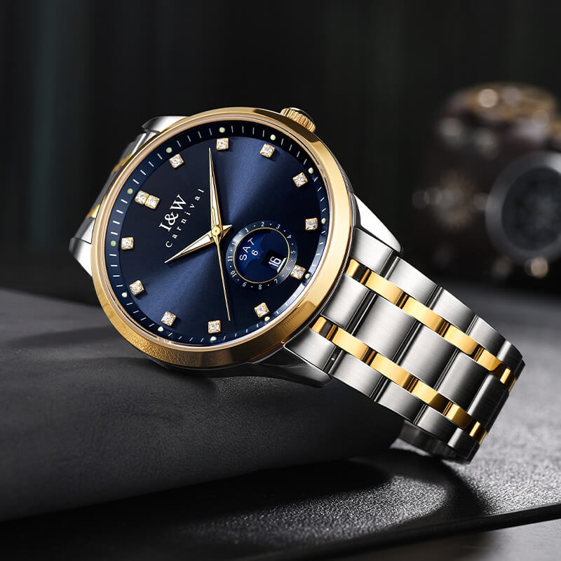 Đặc điểm nổi bật | - Phong cách thiết kế Dress watch. - Mặt số cọc kết hợp số La Mã. - Chức năng: Lịch ngày (01-31), lịch thứ thiết kế dạng đĩa quay (Mon-Sun) tại vị trí 6 giờ. - Vỏ mạ PVD cao cấp. - Case back xuyên thấu. |