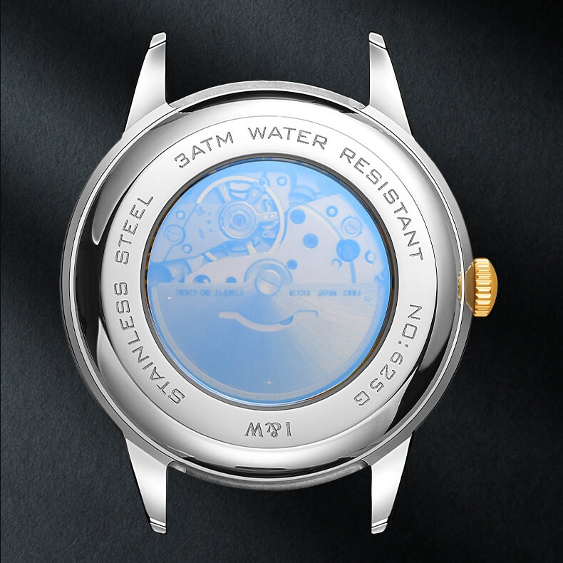 Kiểu máy | Japan Miyota Automatic Mov't (Máy cơ tự động Miyota - Nhật Bản): - 21 chân kính (Jewels). - Tần số dao động 21.600 vph. - Khả năng trữ cót lên đến hơn 42h. |