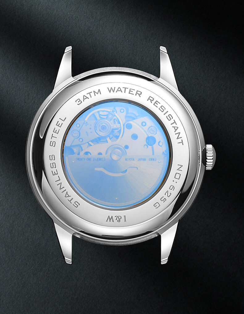 Kiểu máy | Japan Miyota Automatic Mov't (Máy cơ tự động Miyota - Nhật Bản): - 21 chân kính (Jewels). - Tần số dao động 21.600 vph. - Khả năng trữ cót lên đến hơn 42h. |